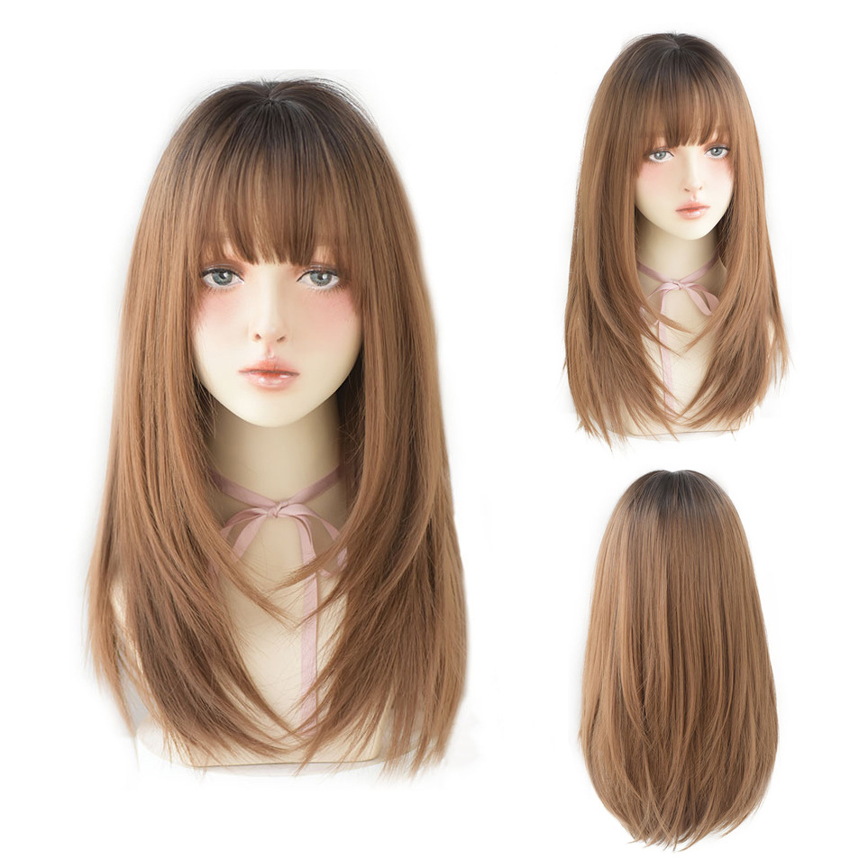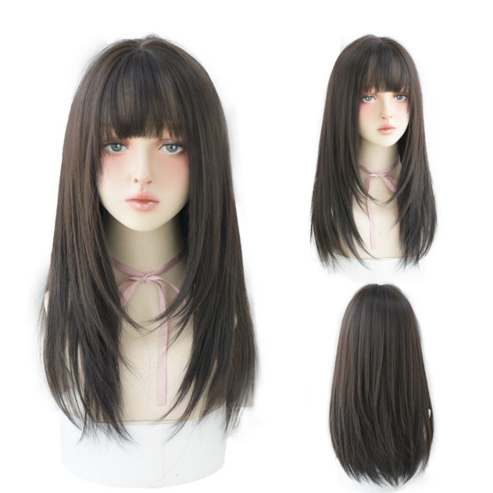 Natural long straight hair, air bangs wig, fluffy and popular online hair wig, 26-inch synthetic wig