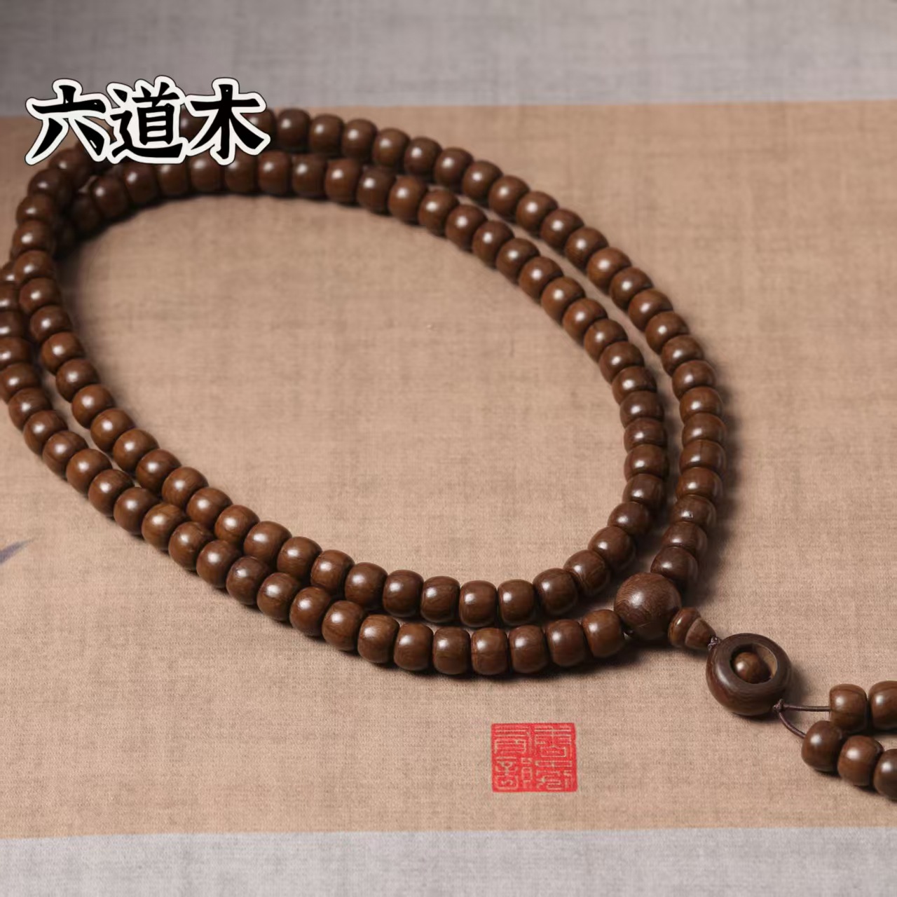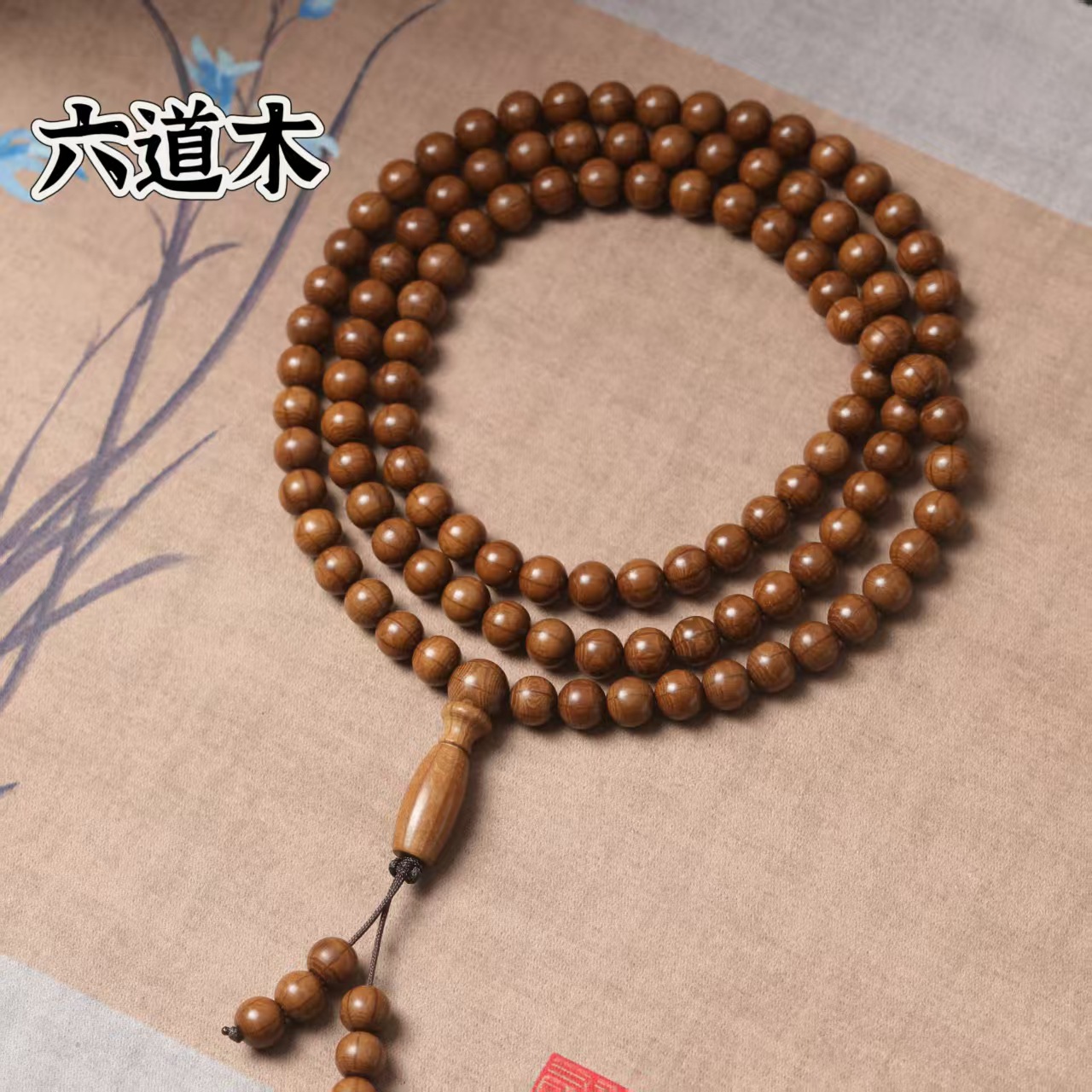 Natural six-path wood hand-held prayer beads, authentic six-path Dragon Subduing wood bracelet, retro and simple six-path wood bracelet neck pendant