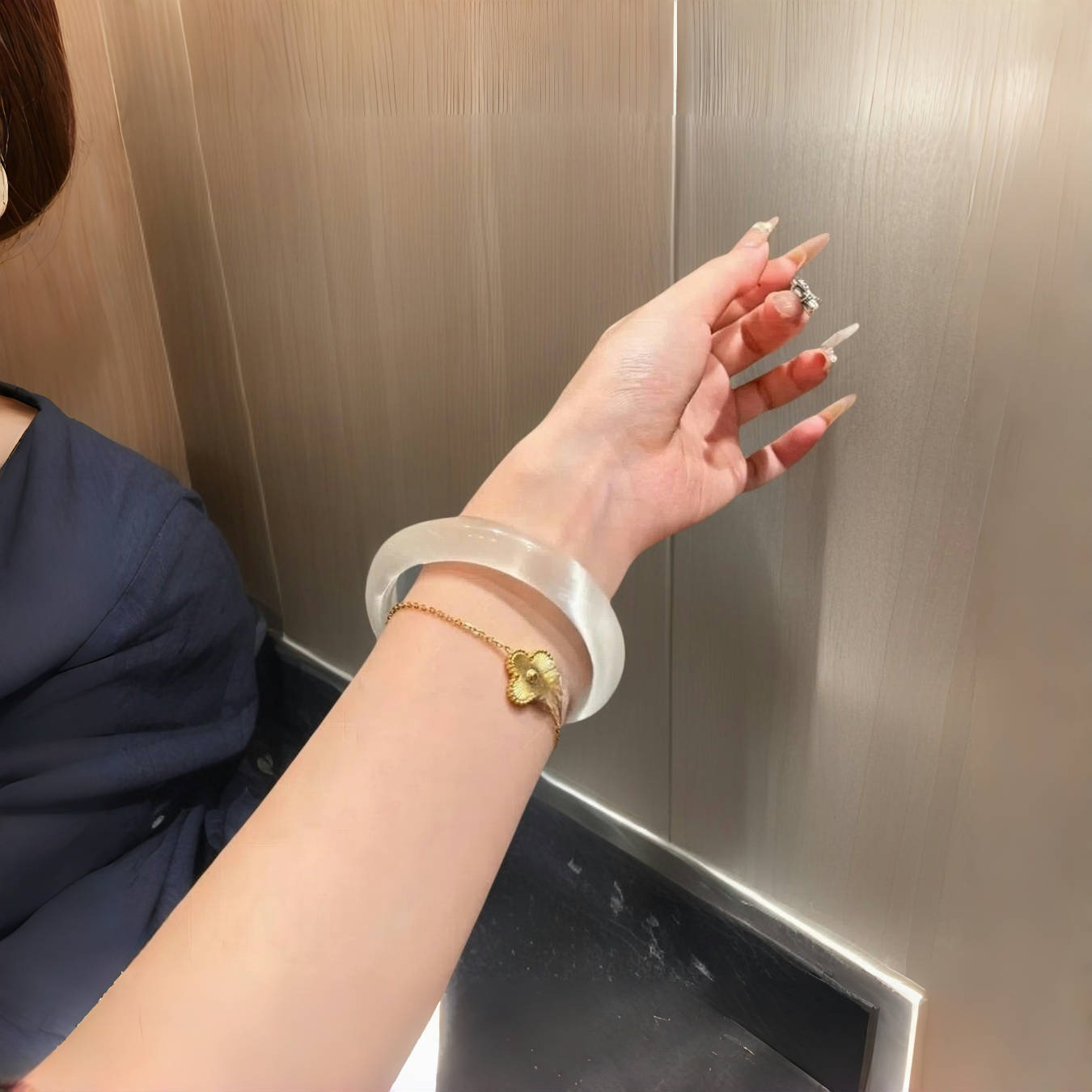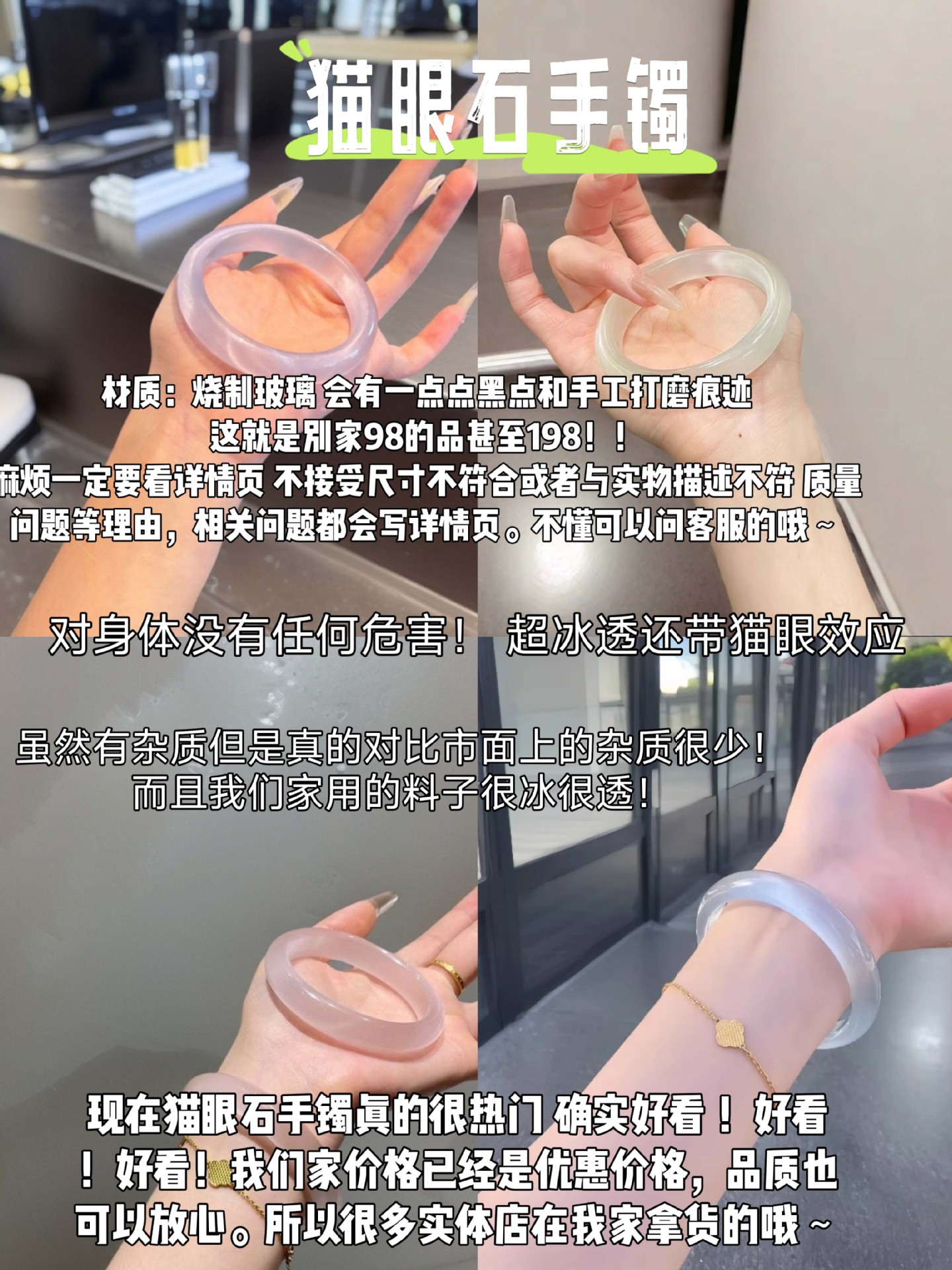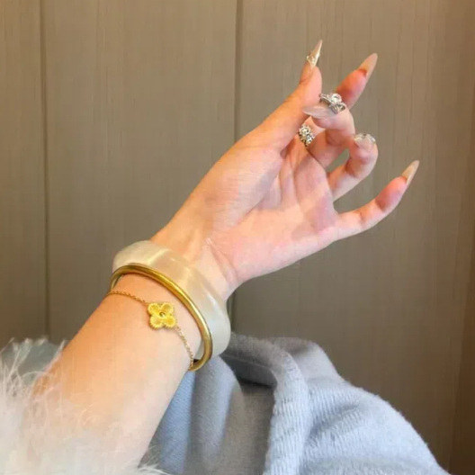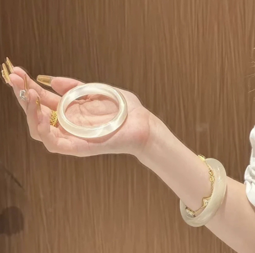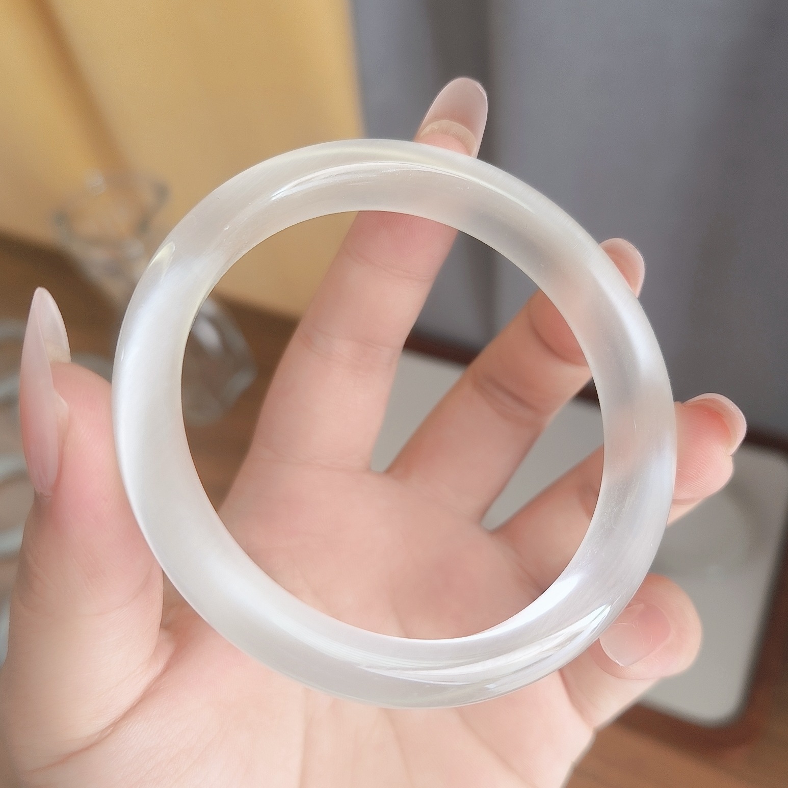 Natural white cat's eye stone white moonlight women's ice-transparent silver bracelet Jade bracelet high ice agate beauty jade bracelet for women