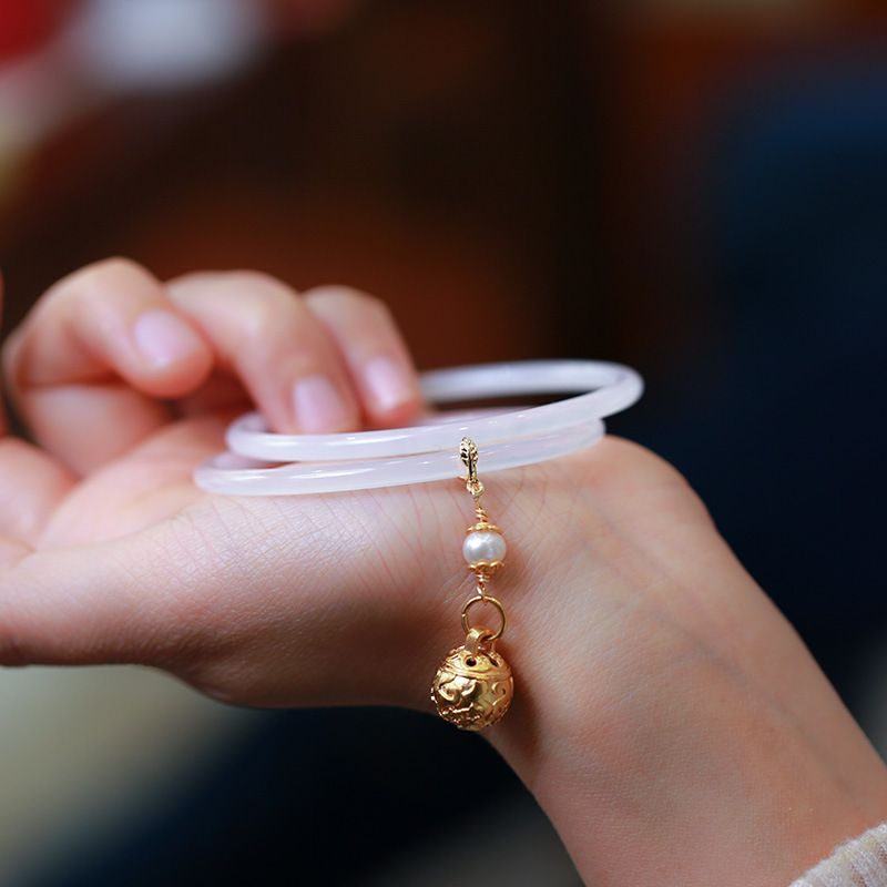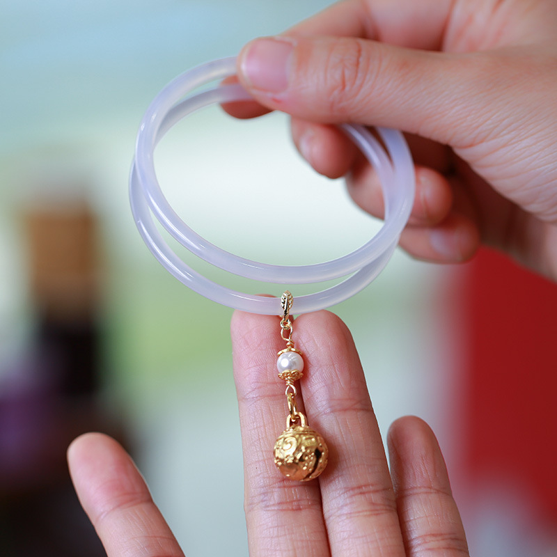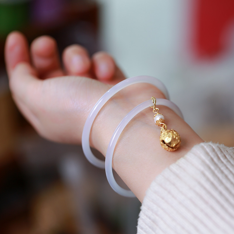 Natural white chalcedony jingle bracelet, large bell agate bracelet, extremely fine and small Chinese-style jade bracelet, ladies' accessories
