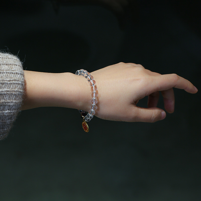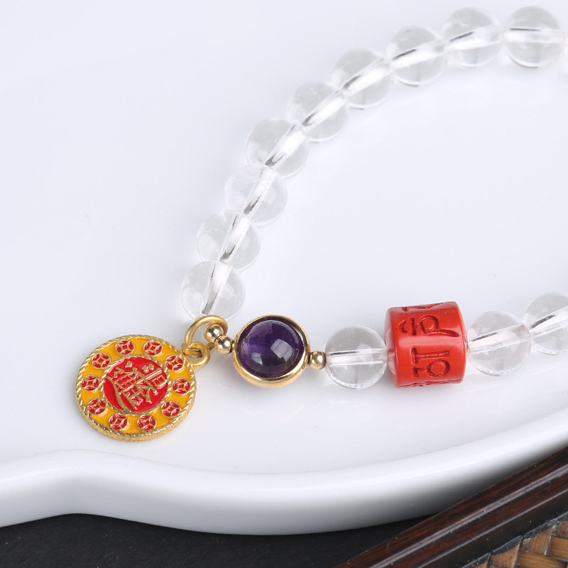 Natural white crystal bracelet hanging the day to earn a fortune, purple crystal "Road to Success", cinnabar "Six-character Mantra" couple's style bracelet