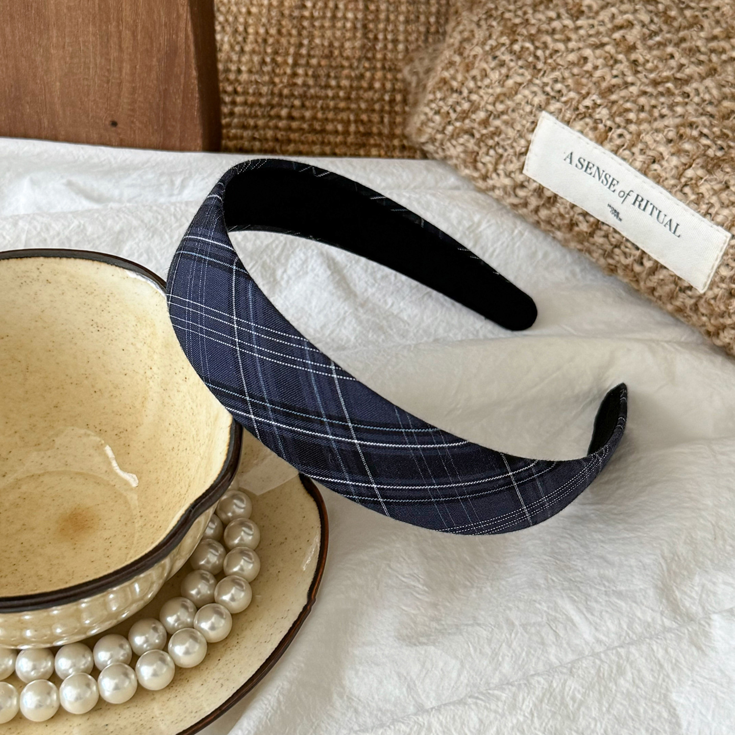 Navy blue fabric checkered hairband for women 2025 new high top headband, a stylish hairpin and hair accessory for daily wear