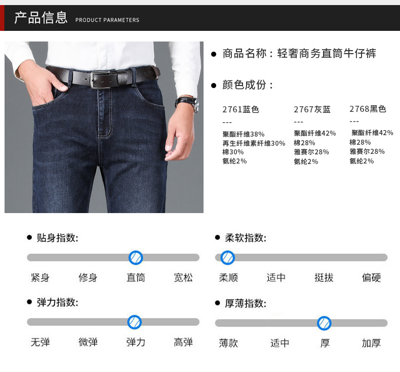 New 2023 winter versatile business men's jeans, no-iron treated denim long pants, straight-leg pants, business gentleman