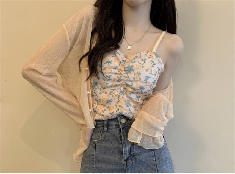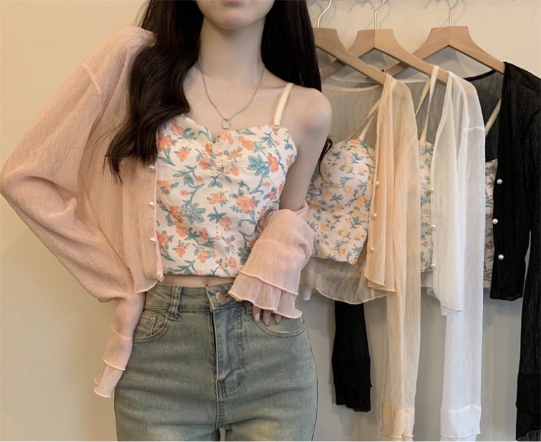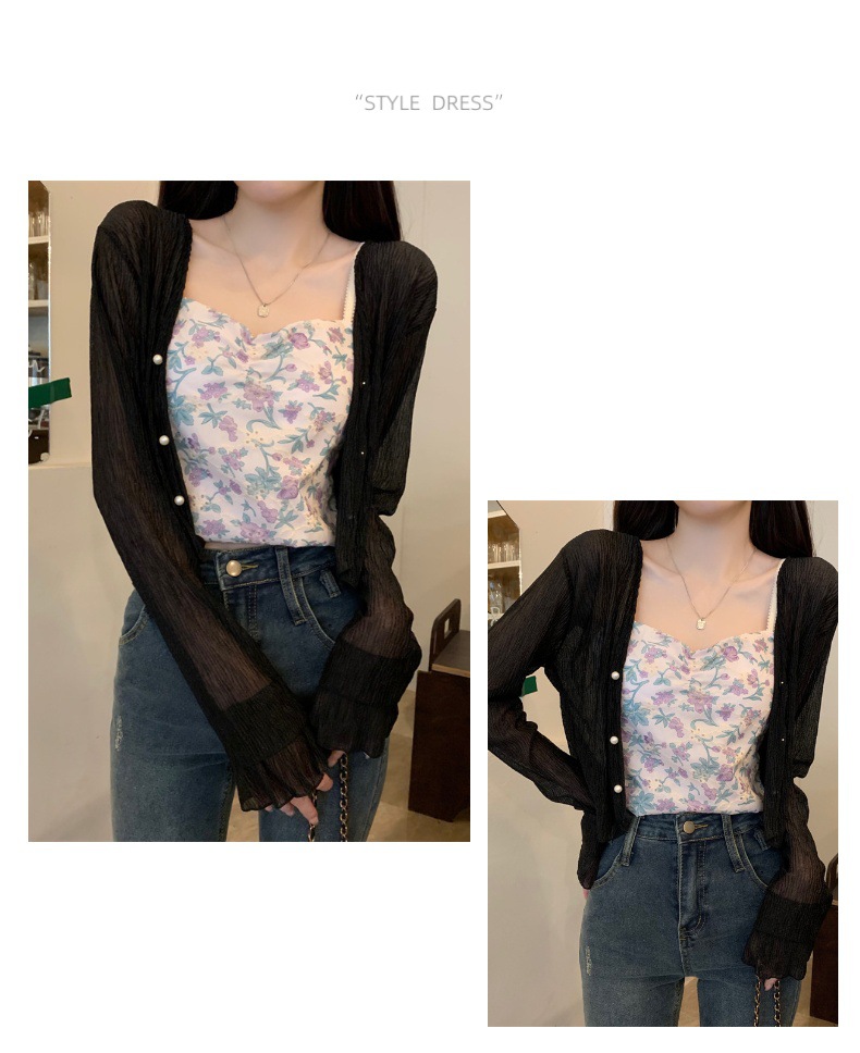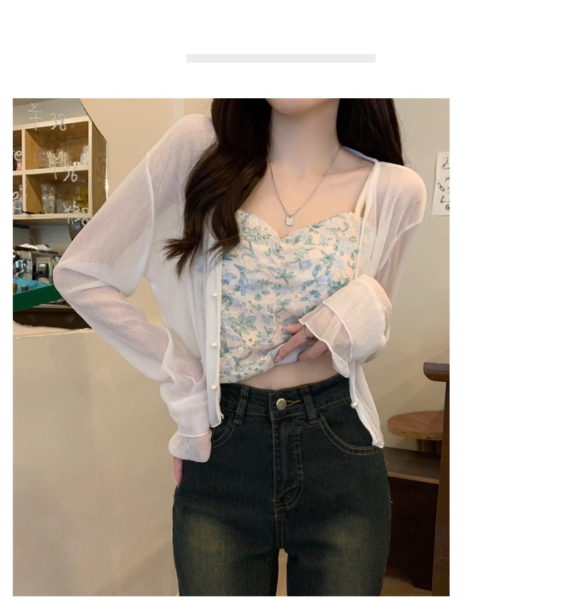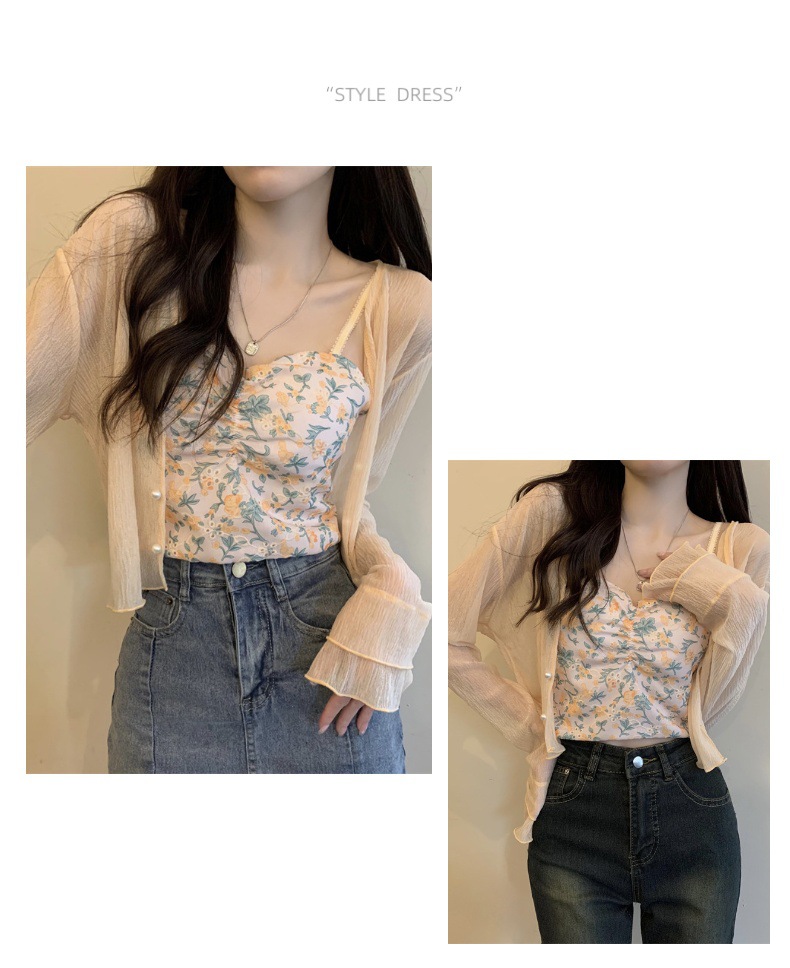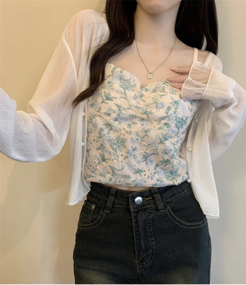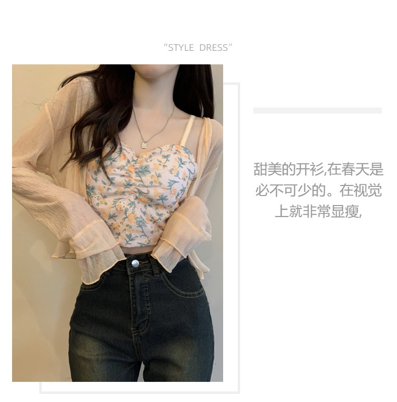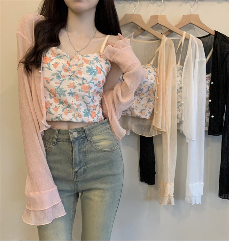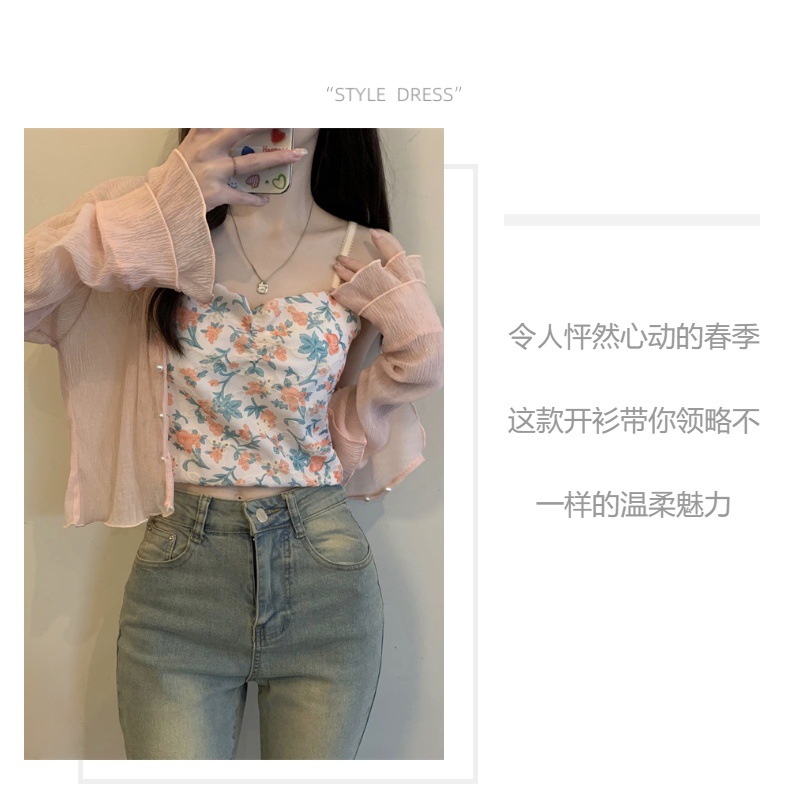 New 2024 summer French women's long-sleeved sun-protective chiffon with a shawl air-conditioned cardigan for beach sun protection