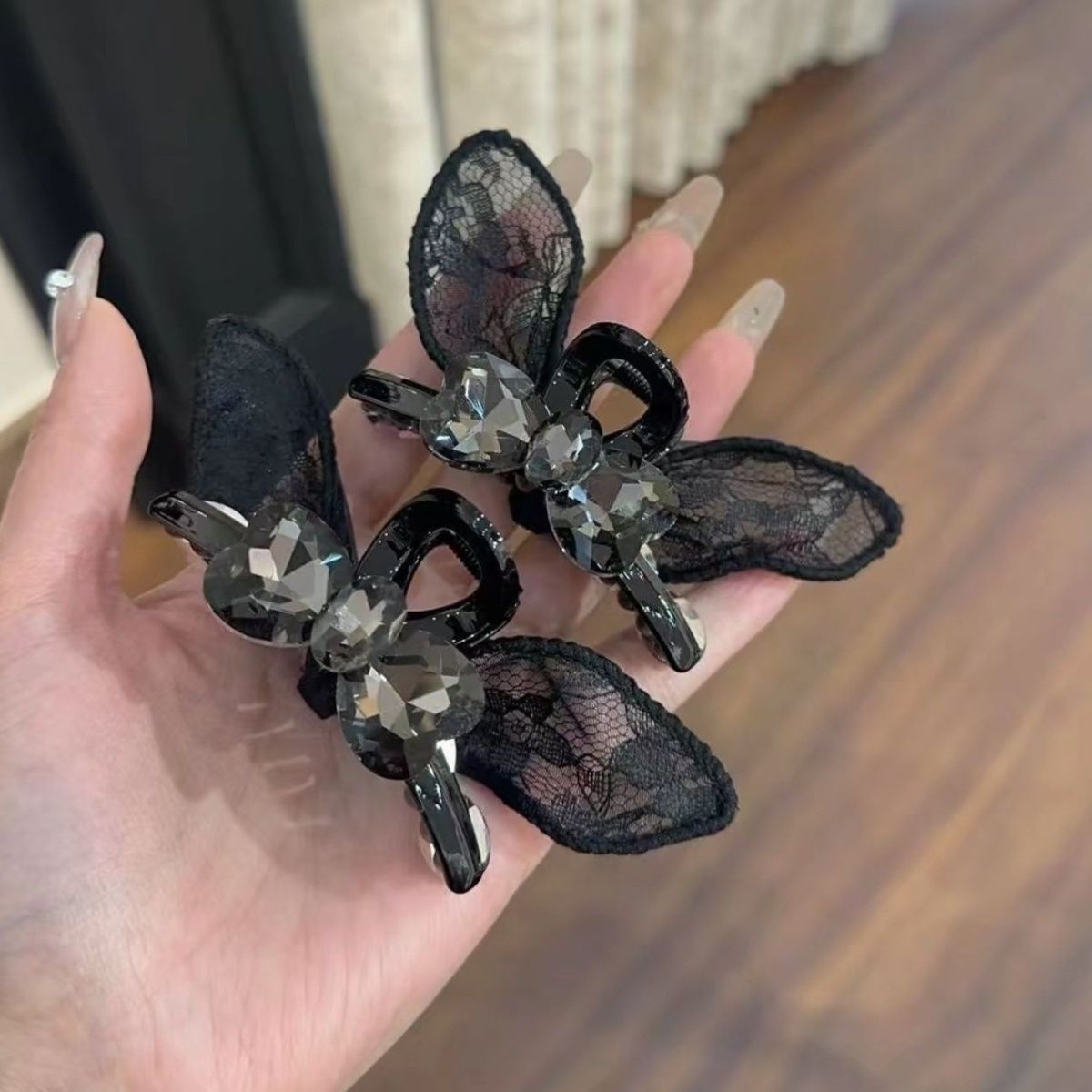 New 2025 Bow mesh hair clip, medium size, double-sided water diamond side, versatile light hair clip, bangs, elegant grip clip