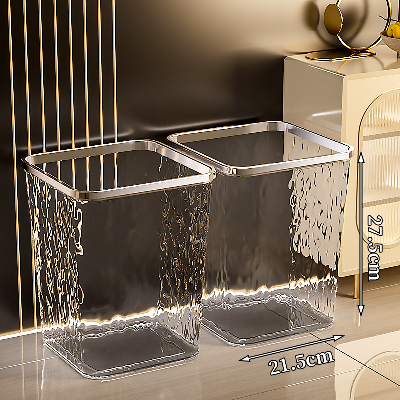 New 2025 transparent household trash can for living room, light luxury storage, large capacity paper basket, bathroom, kitchen and bedroom