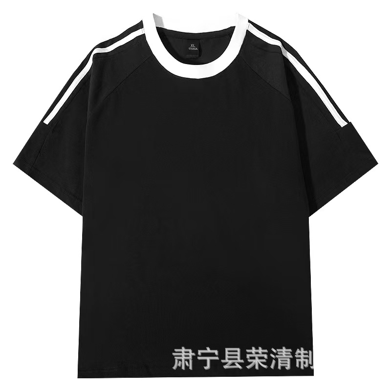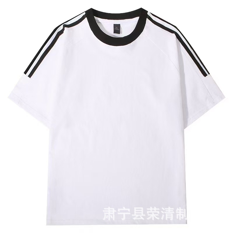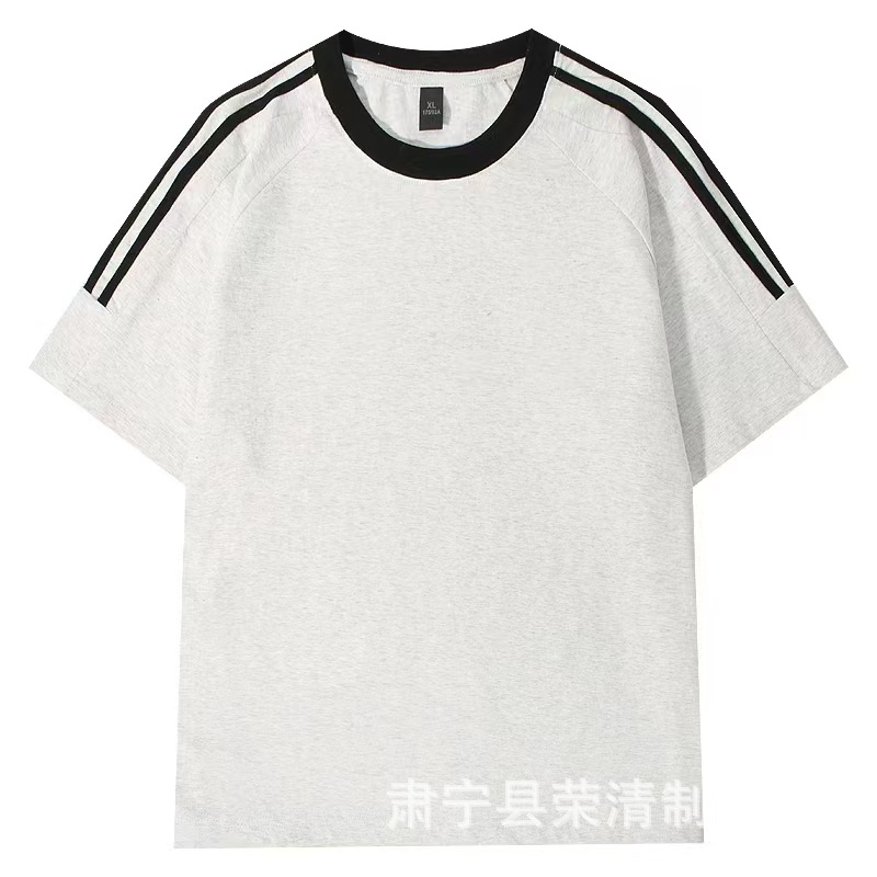 New 220g classic American three-bar pure cotton T-shirt for men, summer casual retro loose round-neck trendy short-sleeved