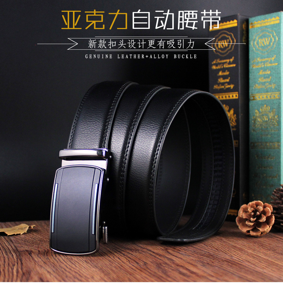 New acrylic automatic buckle belt for men's business belts, direct supply from the manufacturer of middle-aged and young people's belts