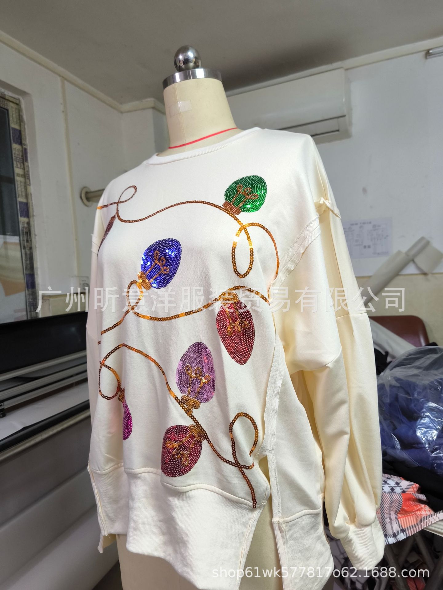 New Amazon cross-border European and American women's fashion trend for Autumn/Winter 2024, sequined long-sleeved pullover 250g thick hoodie