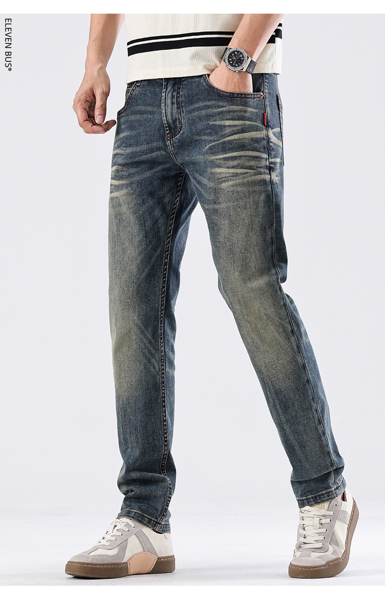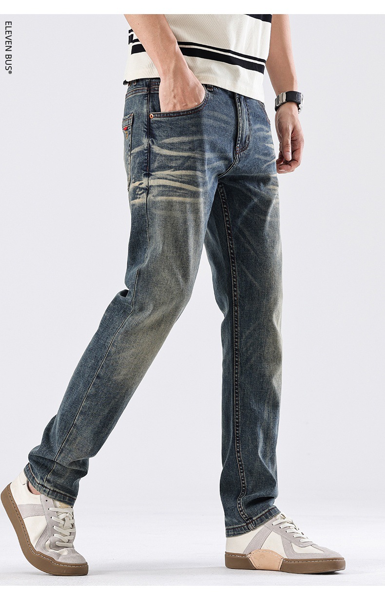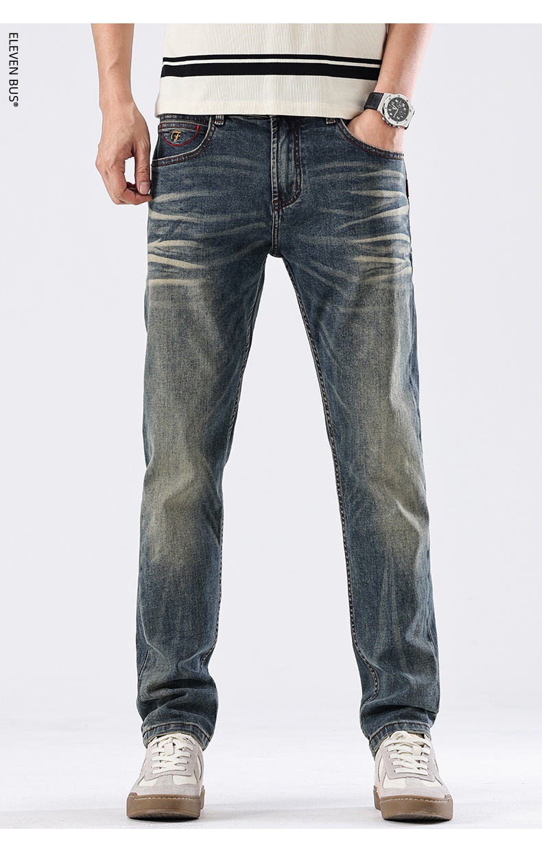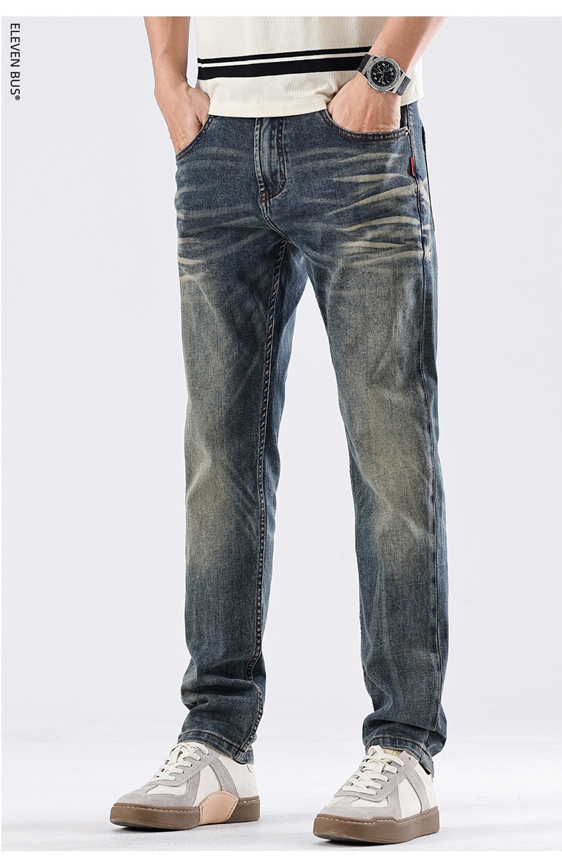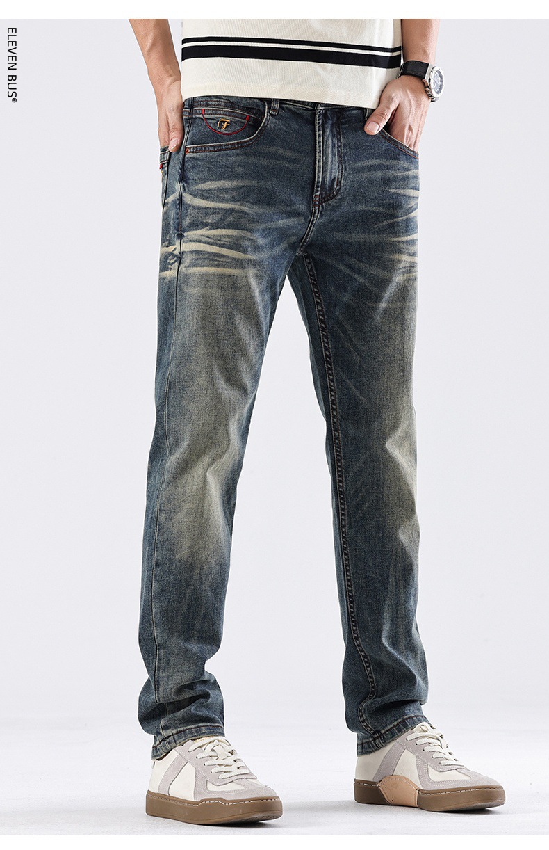 Spring new American retro heavy-duty washed men's slim-fit straight jeans, a trendy brand of high-end jeans for men