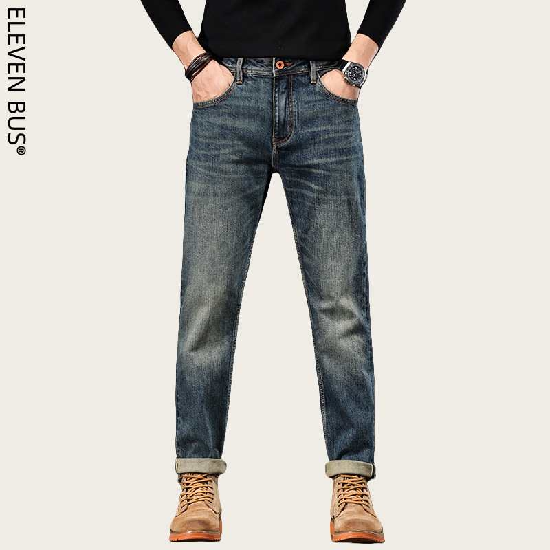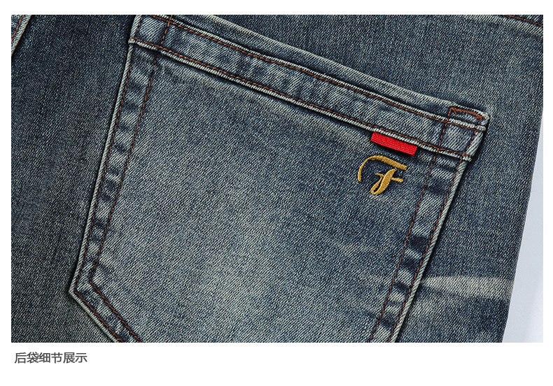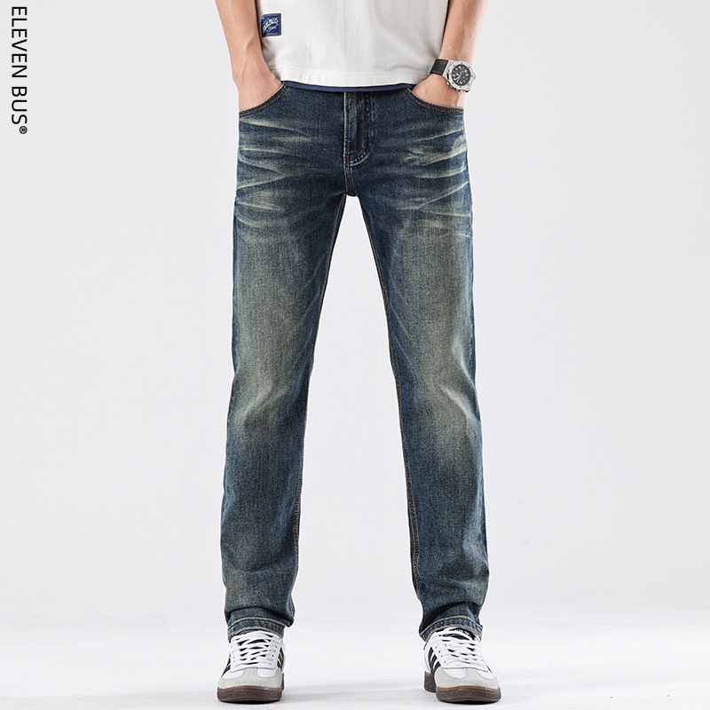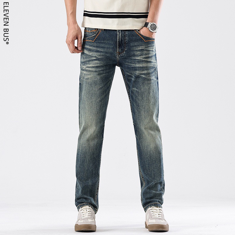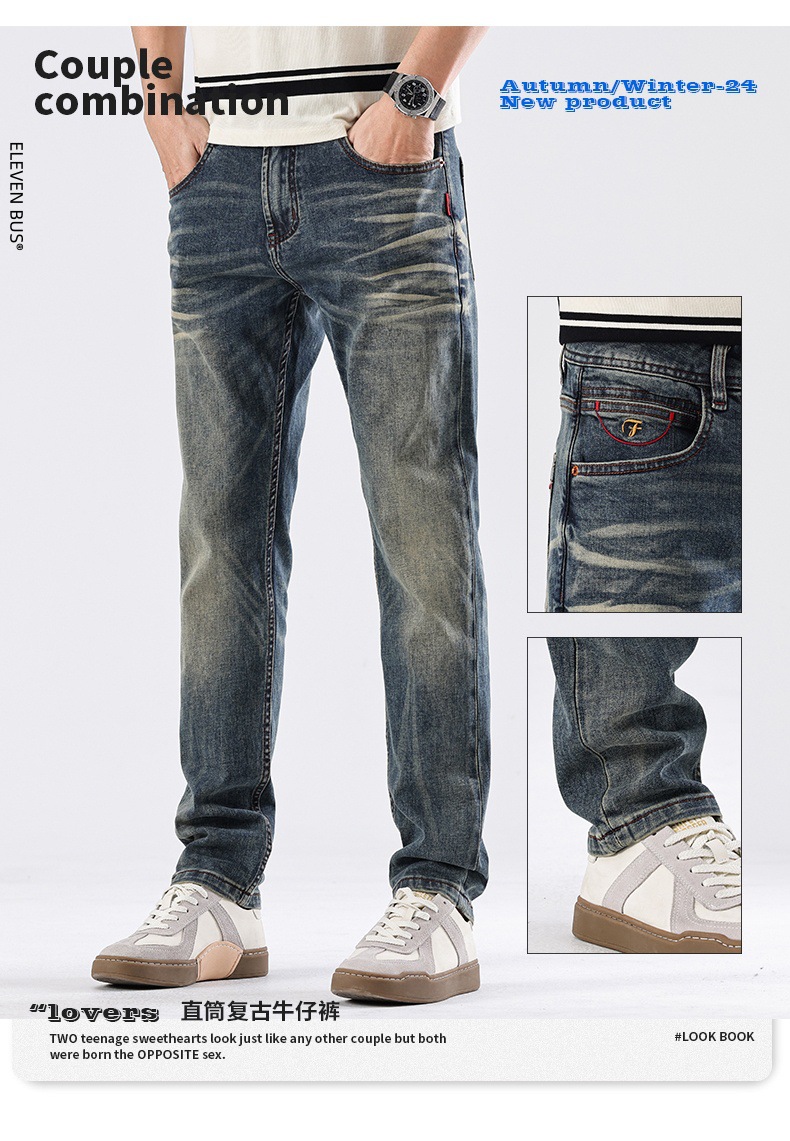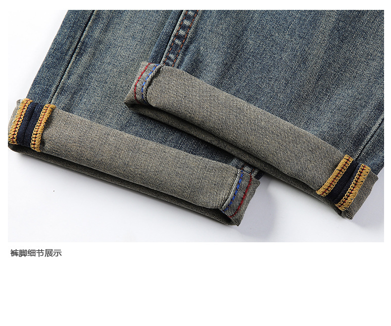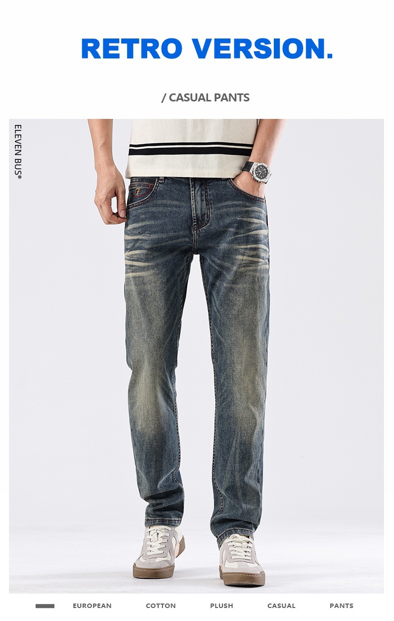 Spring new American retro heavy-duty washed men's slim-fit straight jeans, a trendy brand of high-end jeans for men