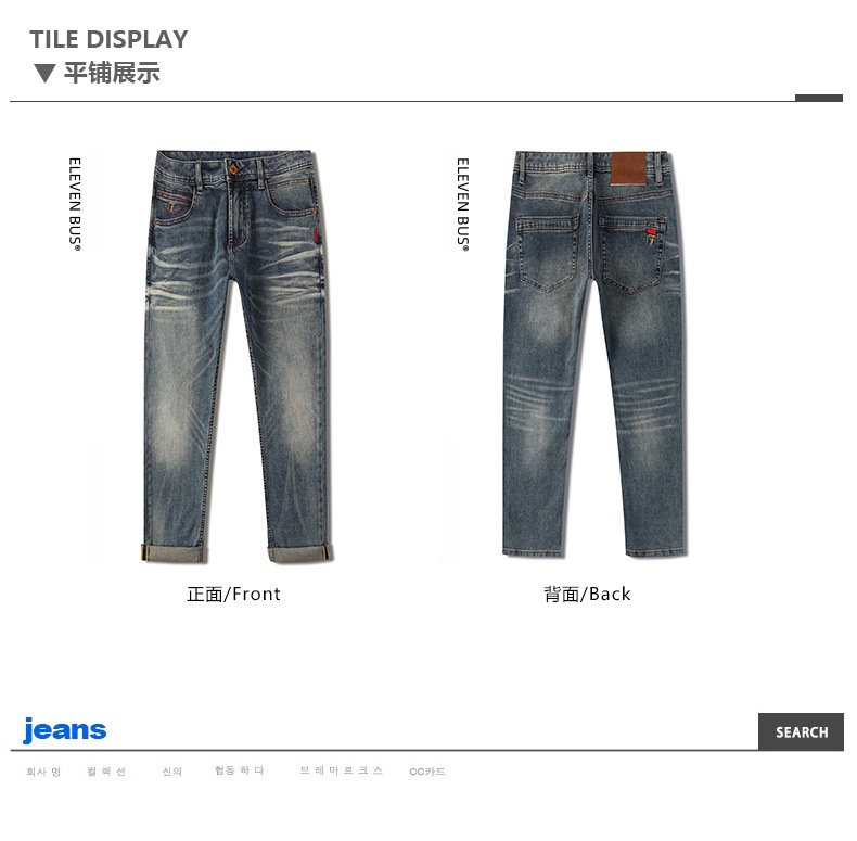 New autumn and winter fashion Hong Kong-style men's jeans, a men's trendy brand, high-end stretch small straight-leg long pants for men in stock