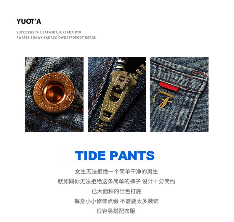 New fashionable and simple design, small straight black bull men's jeans, high-end quality, slimming denim trousers for men
