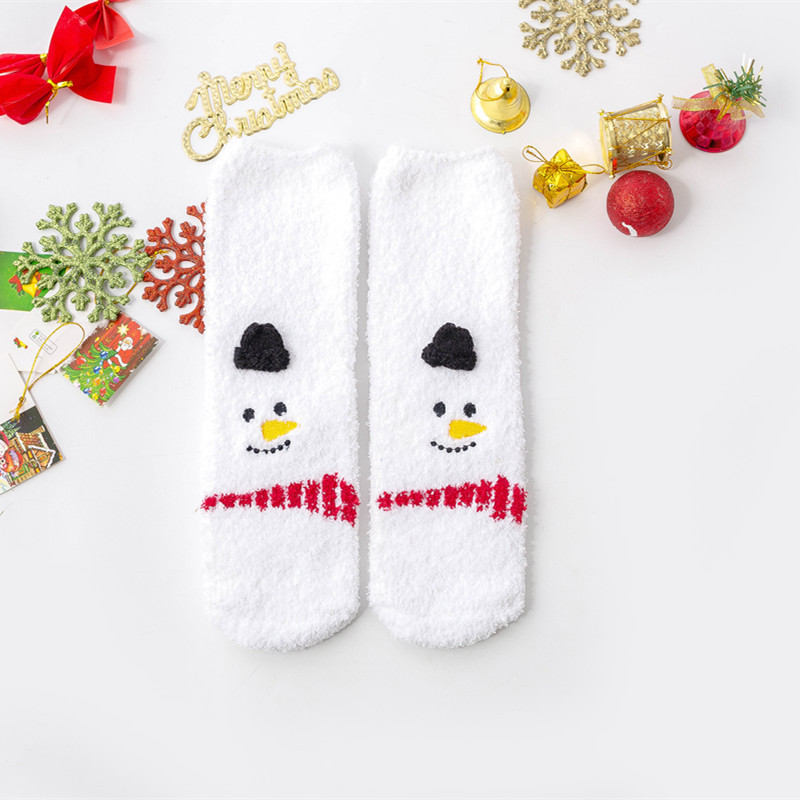 New autumn and winter products: Cartoon Christmas coral fleece socks, women's thickened warm half-fleece towel, floor home sleep socks