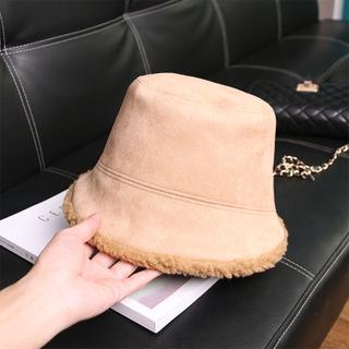 New autumn and winter sheepskin hats, Korean style, versatile and casual bucket and basin hats, embroidered letter deerskin velvet fisherman hats
