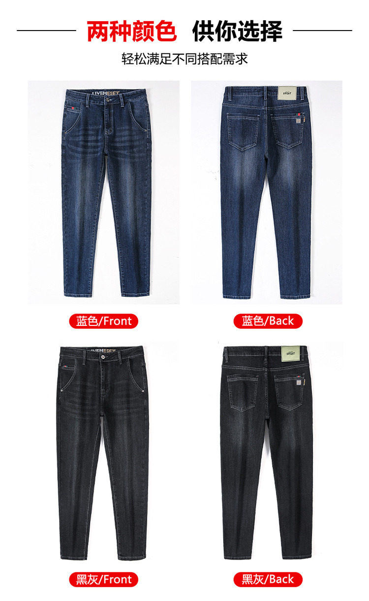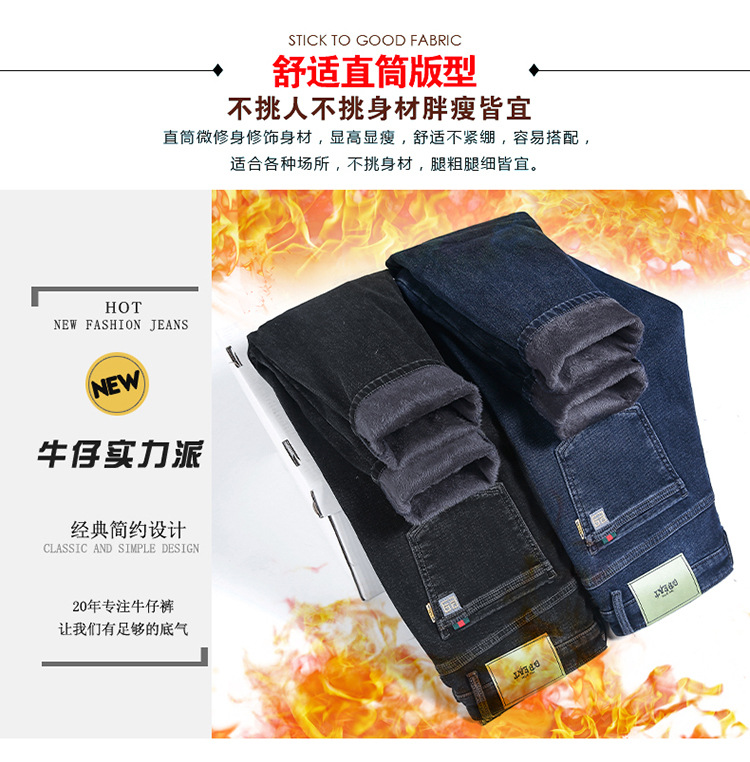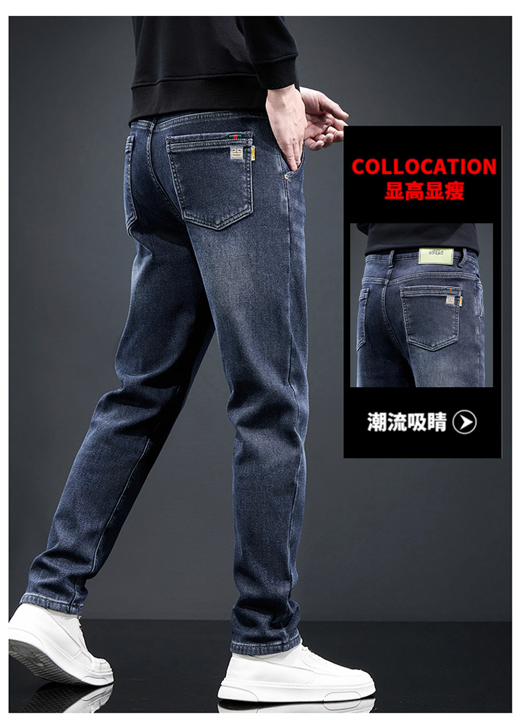 New autumn and winter style fleece and thickened men's straight-leg loose light business men's casual long pants jeans for men