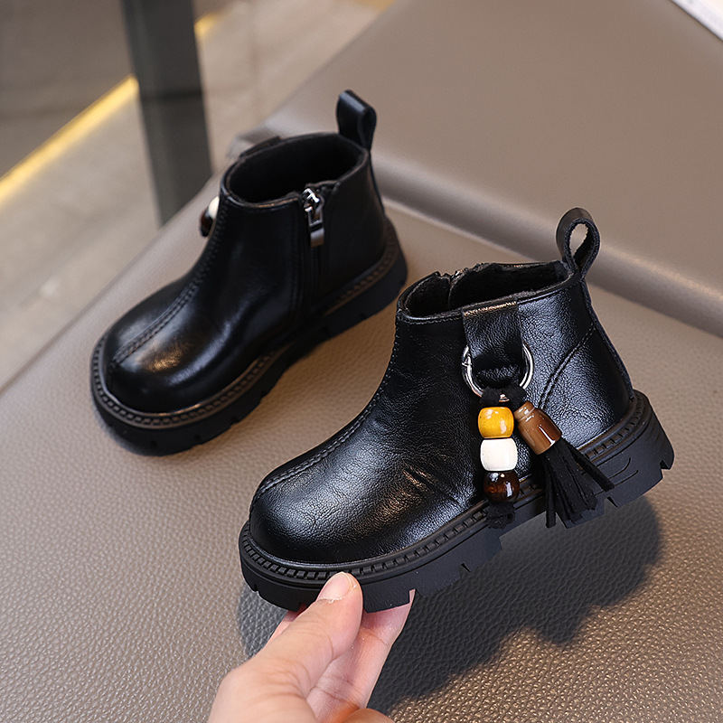 New autumn/winter 2025 children's short boots, Dr. Martens boots with fleece, and fashionable leather boots for baby girls in winter