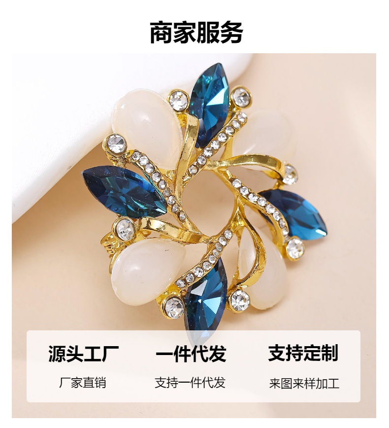 New Bauhinia cat's eye brooch, flower crystal full diamond brooch, silk scarf buckle, stylish and fashionable dual-purpose brooch wholesale