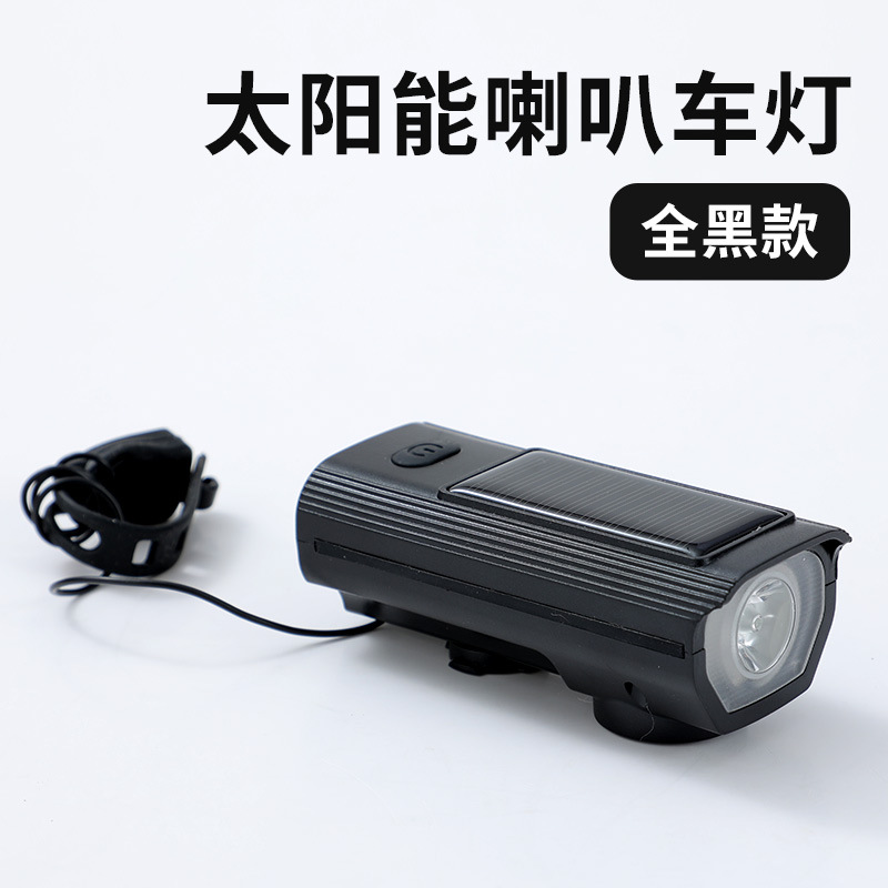 New bicycle solar-powered headlight, multi-functional horn light, night riding Type-C charging strong light cycling flashlight