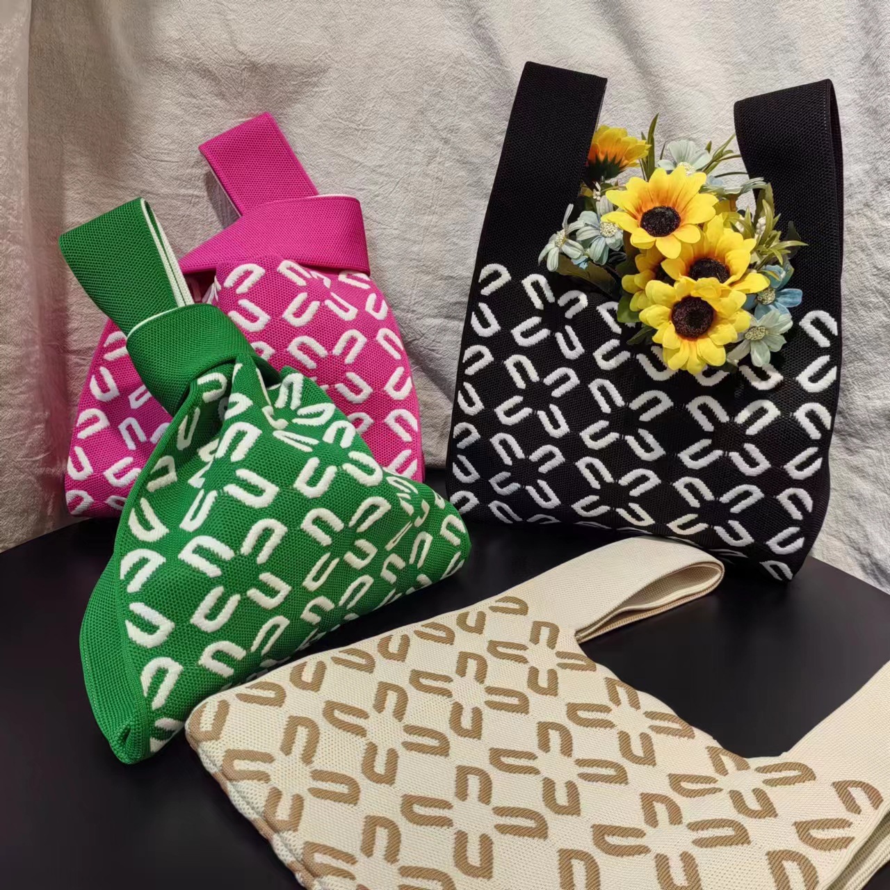 New black and white four-piece pattern women's bag for spring and summer, Japanese and Korean knitted bag, multi-functional wrist bag for daily commuting