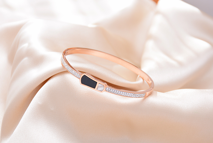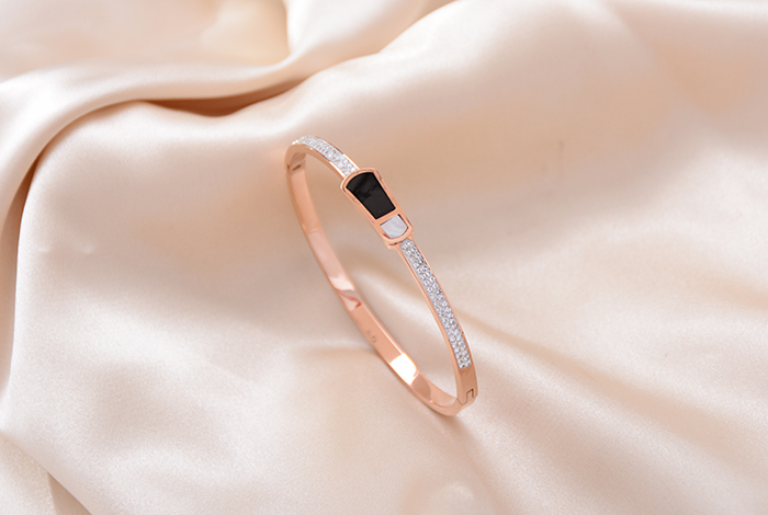 New black diamond bracelet, titanium steel rose gold bracelet, versatile accessory and women's jewelry from Europe, America and Korea