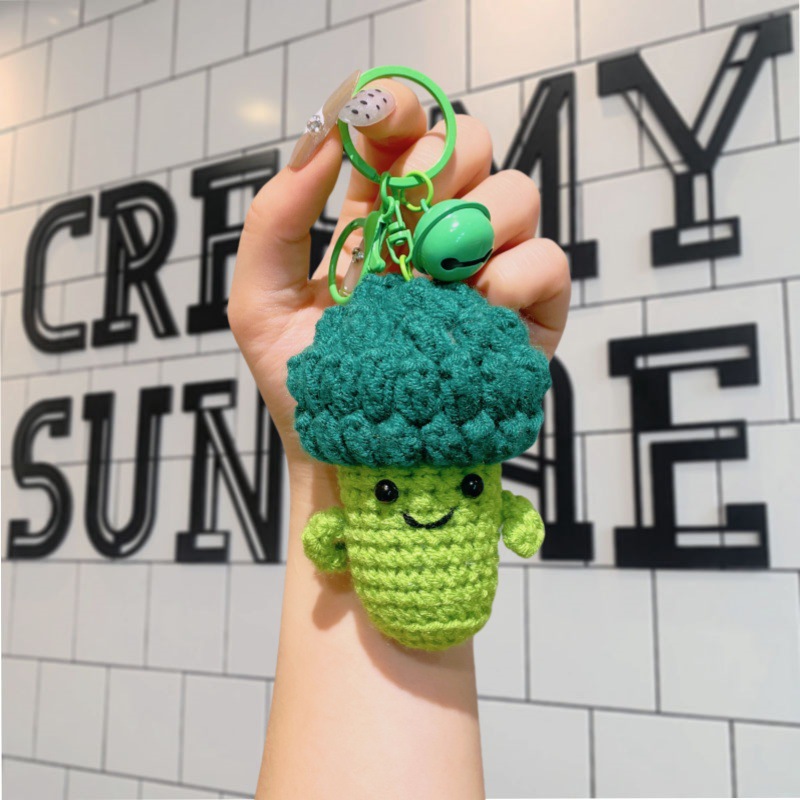 New broccoli plush keychain, vegetable wool knitted small gift doll, ins creative car key chain