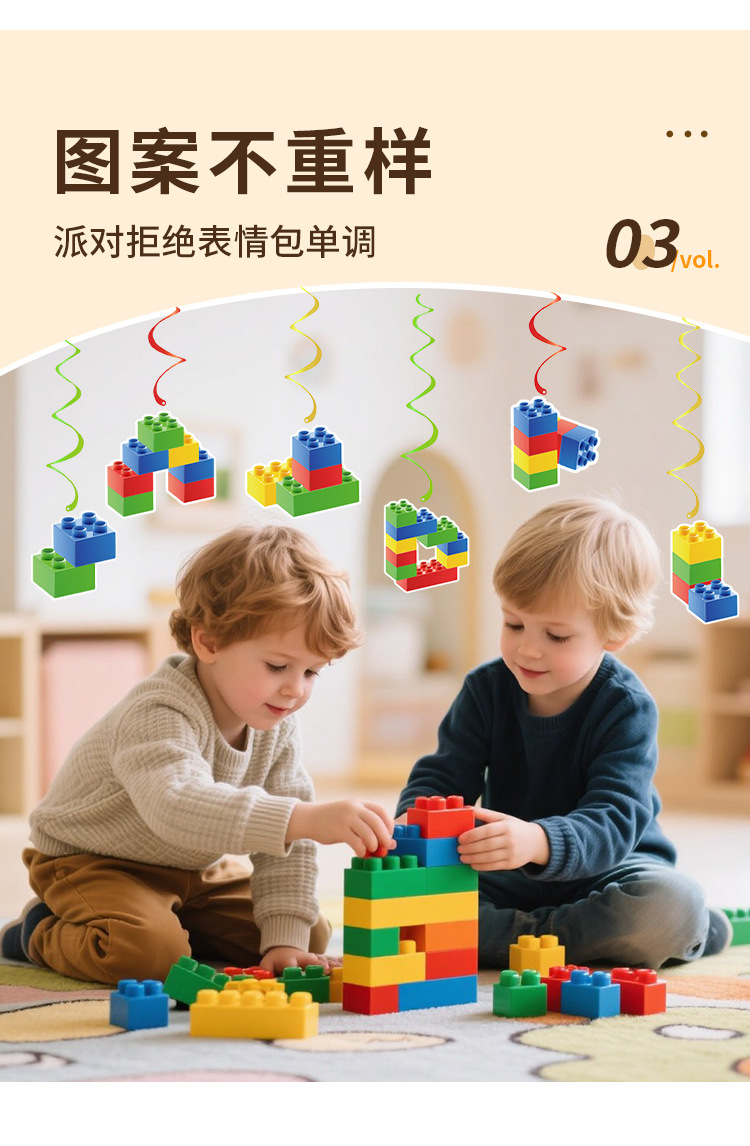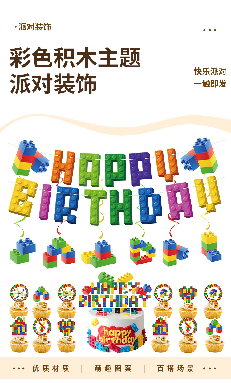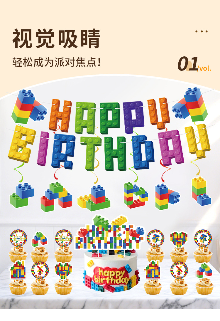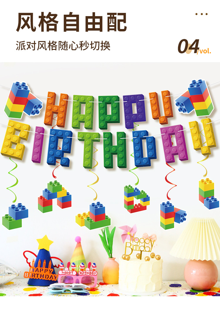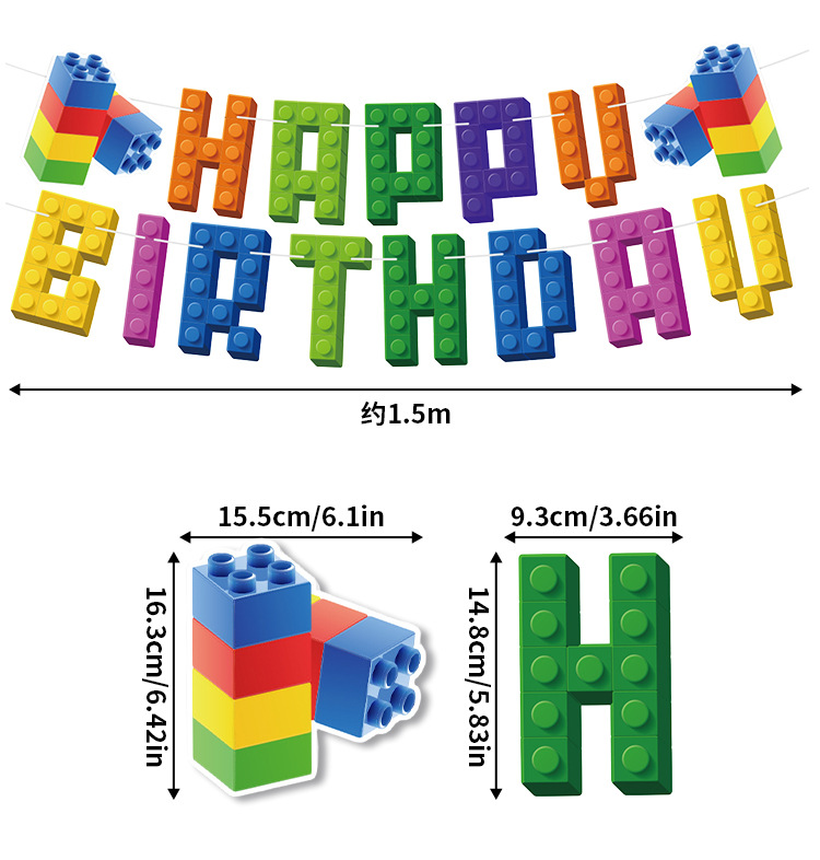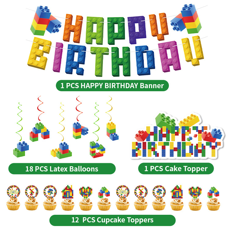 New building block-themed children's birthday party decoration Lego honeycomb display party set Banner balloon set