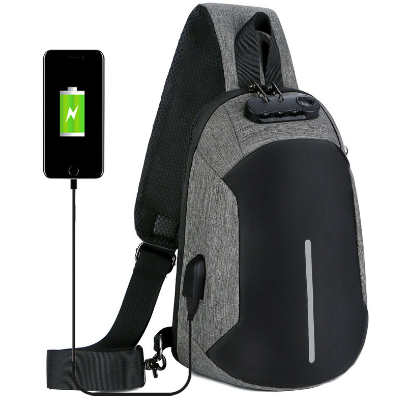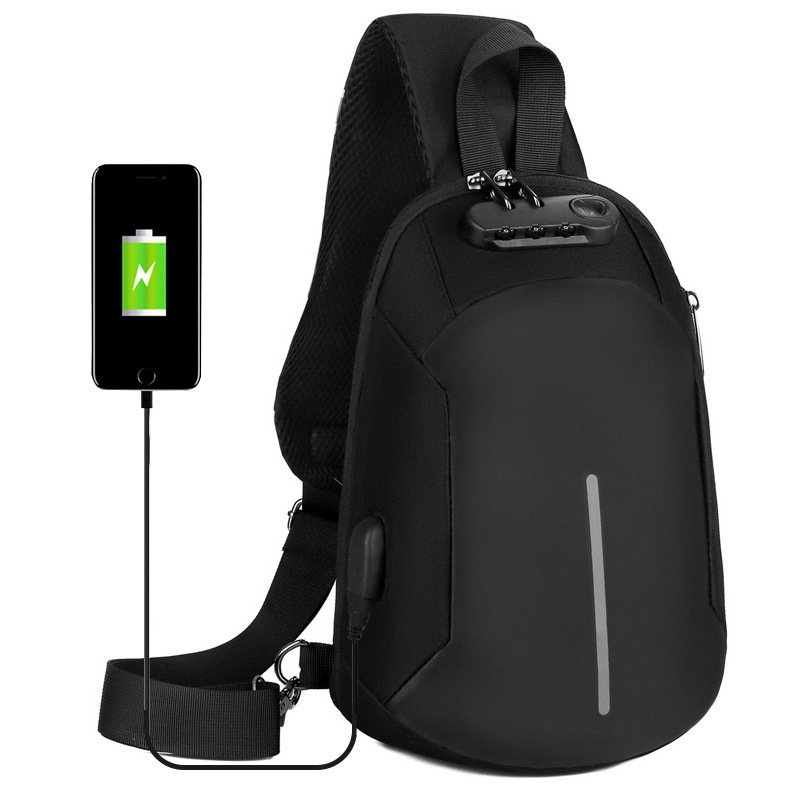 New casual crossbody bag, trendy men's anti-theft single-shoulder bag, business casual USB charging waterproof men's chest bag