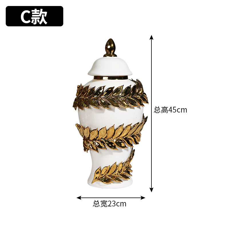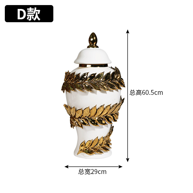 New ceramic electroplated decal golden general jar, European-style flower arrangement vase, handicraft display item, decorative storage jar