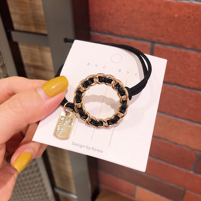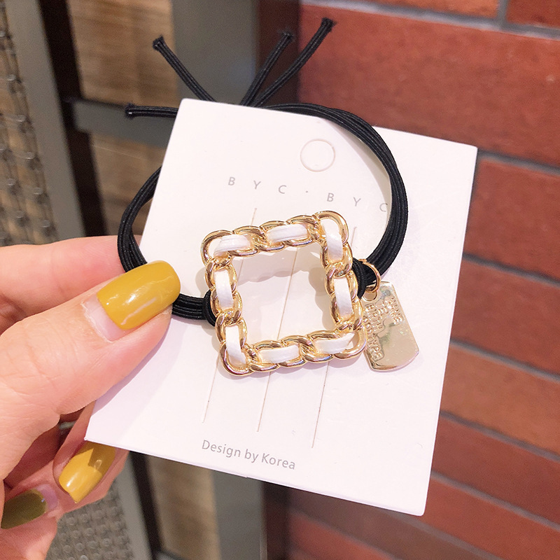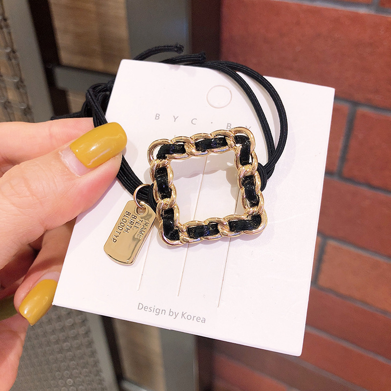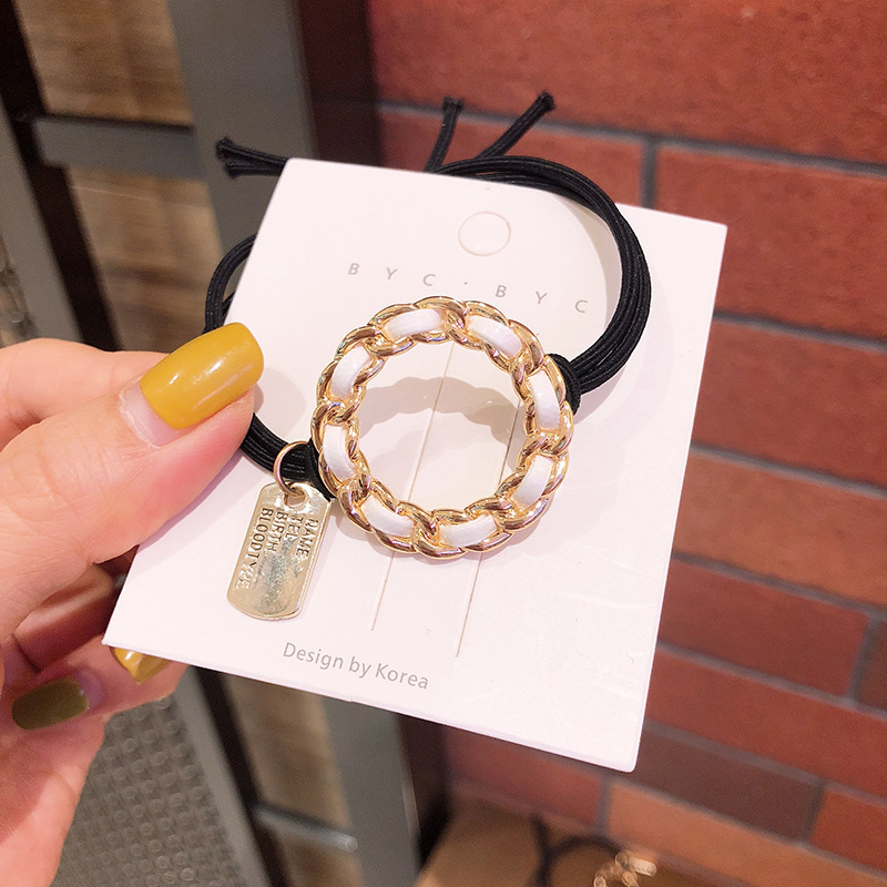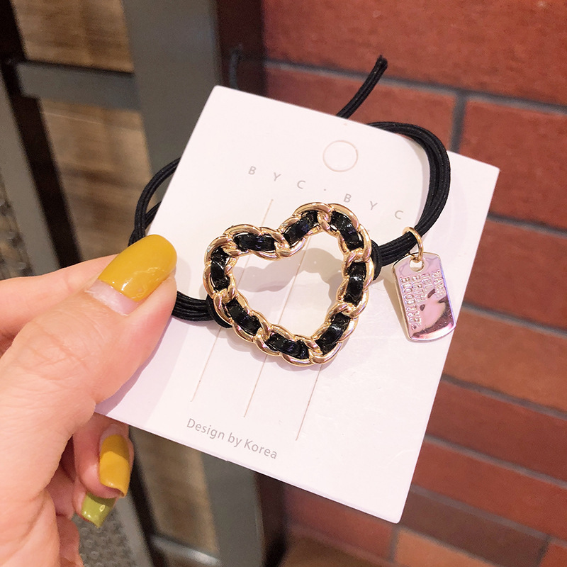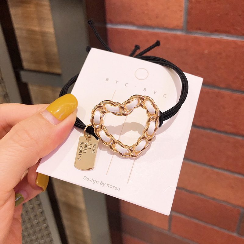 New Chanel-style hair tie for women, Korean version, versatile heart-shaped hair tie, metal leather band, durable, simple and versatile leather case