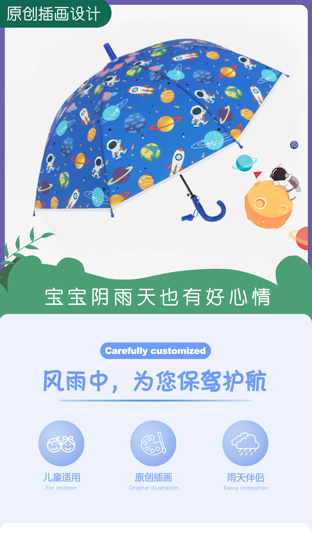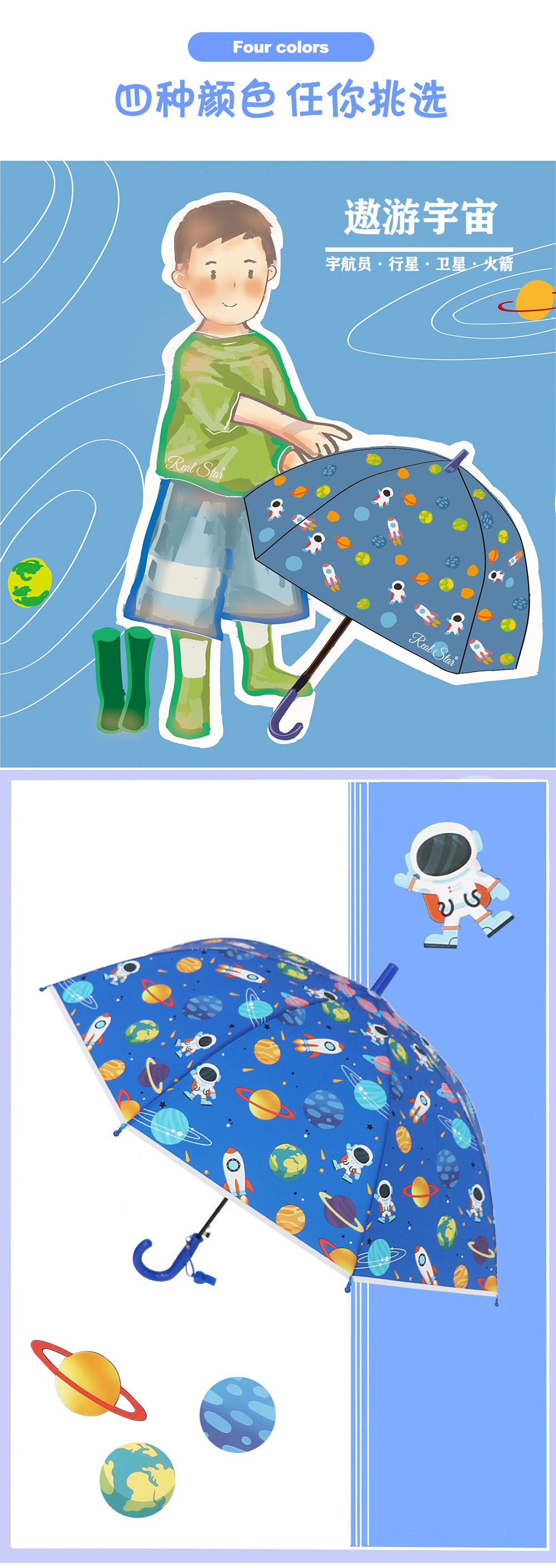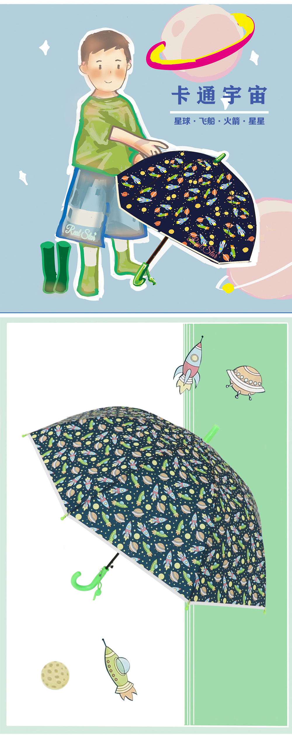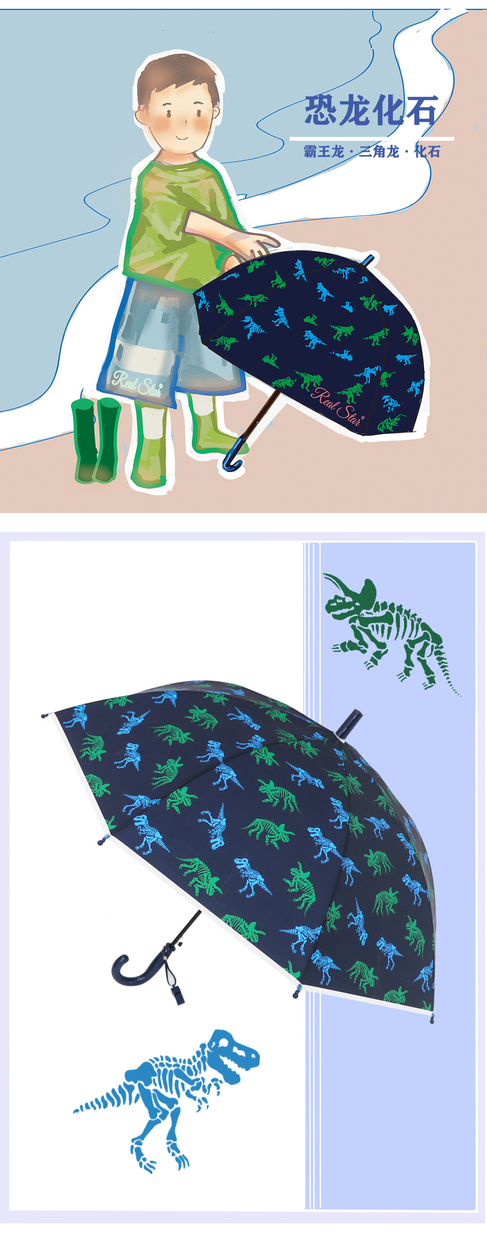 New children's cartoon pattern automatic umbrella, plastic umbrella, dinosaur space pattern, primary school student button opening umbrella wholesale