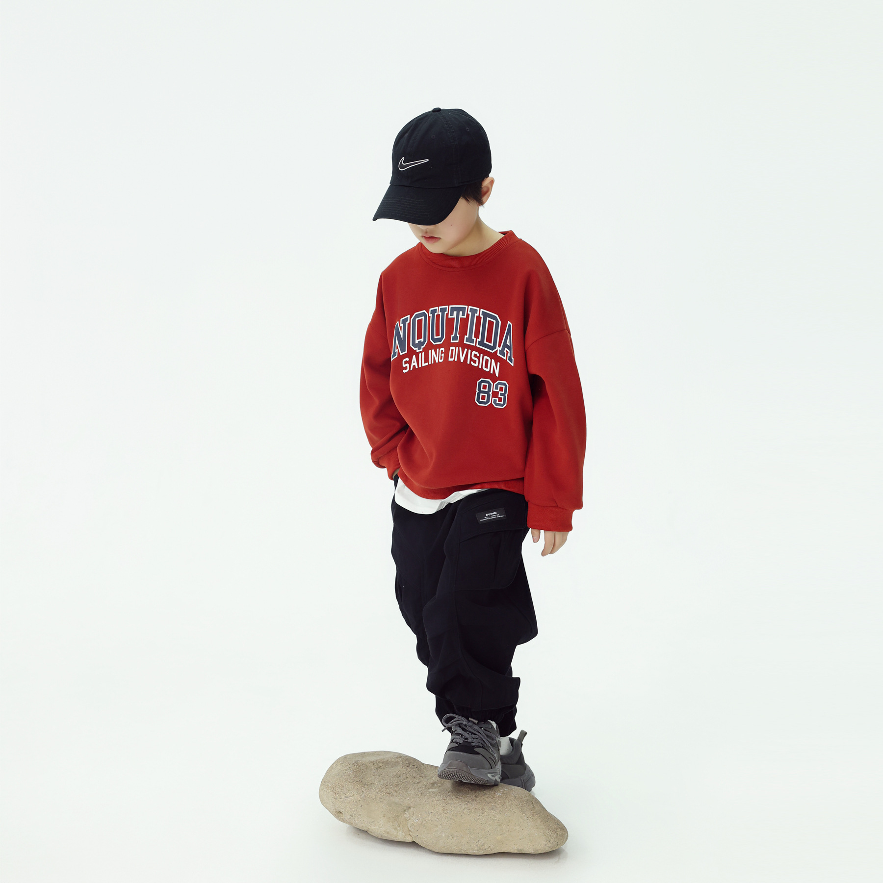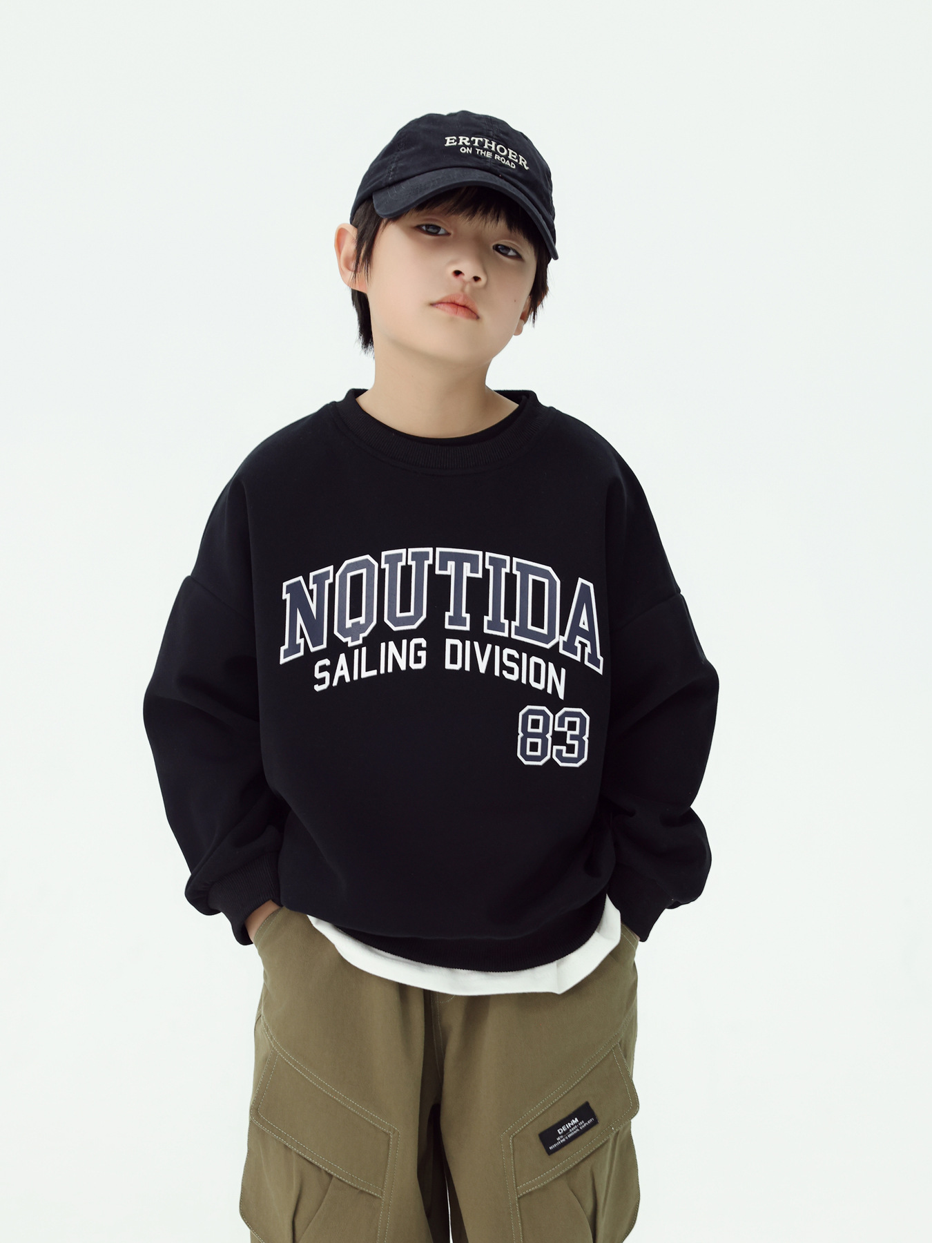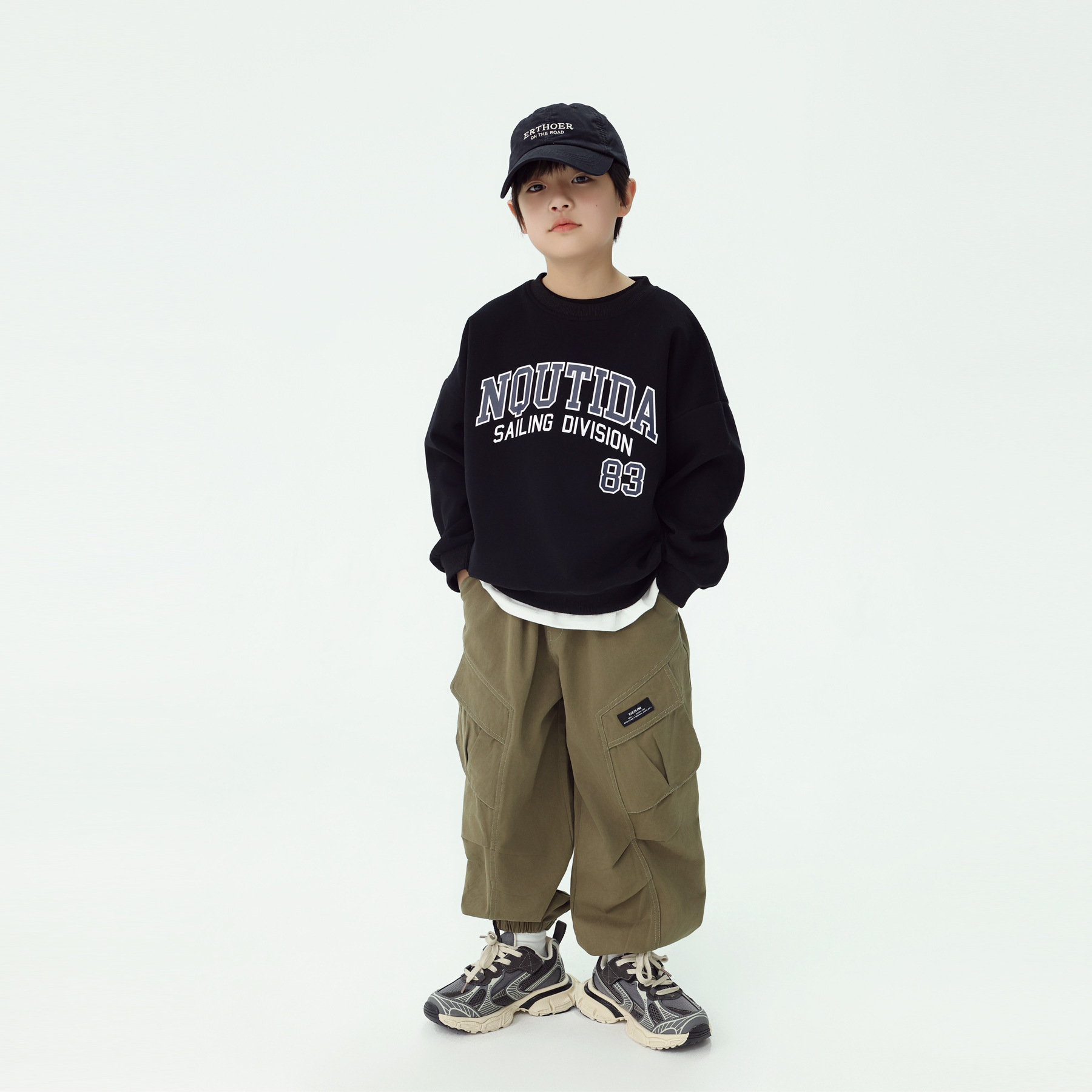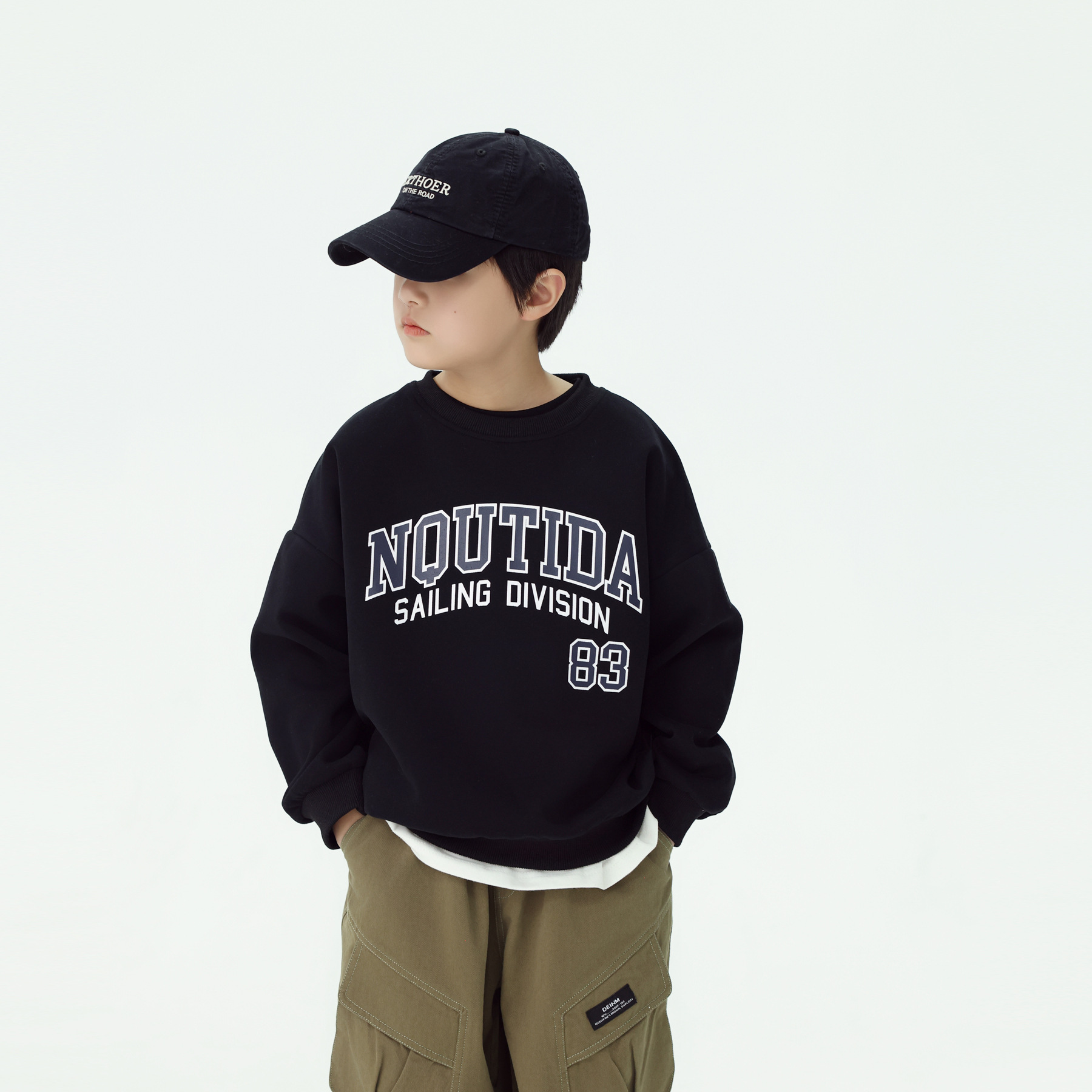 New children's clothing for the autumn of 2024: Stylish letter-printed tops for kids, long-sleeved, loose and casual round-neck hoodies for boys