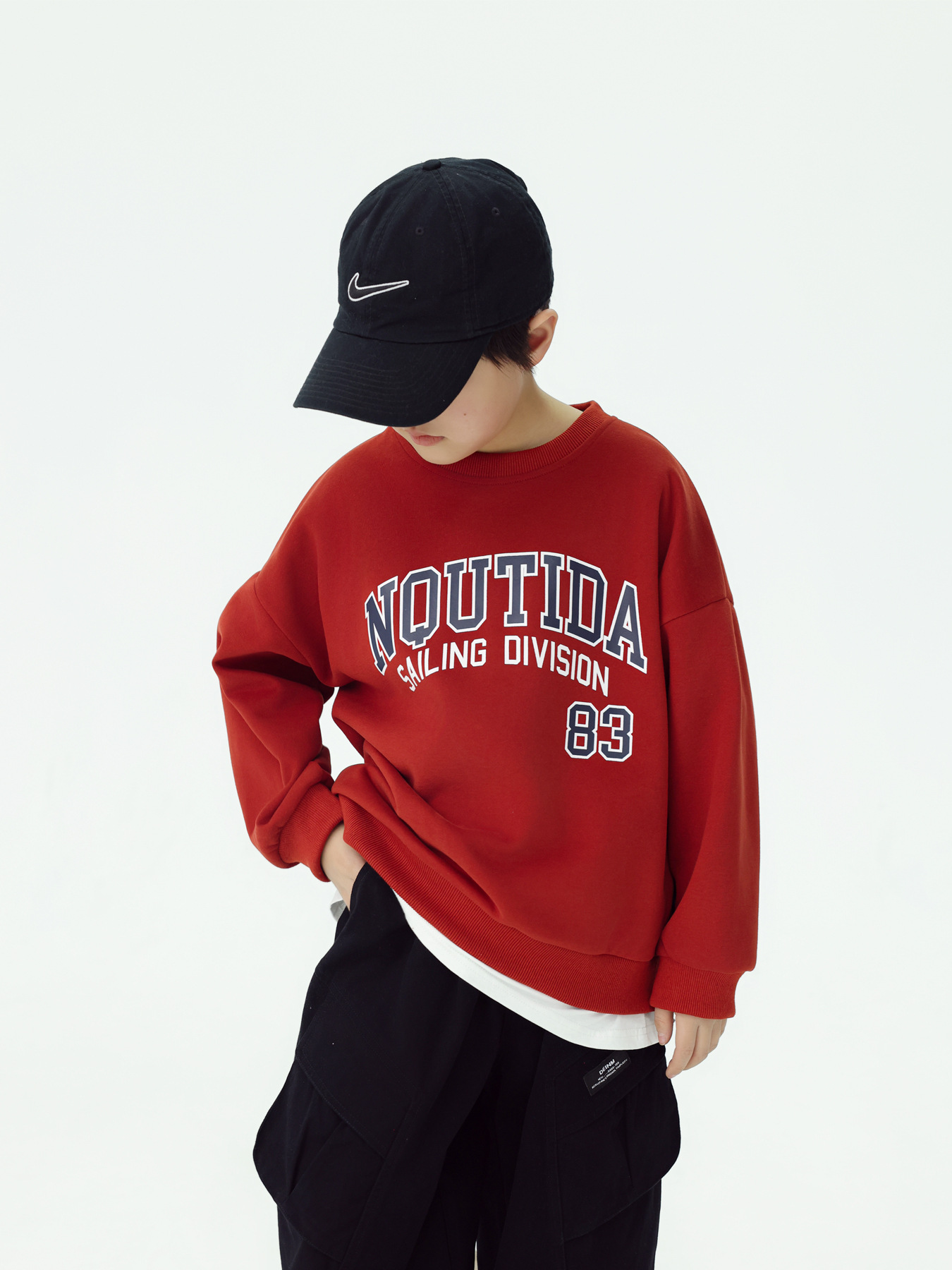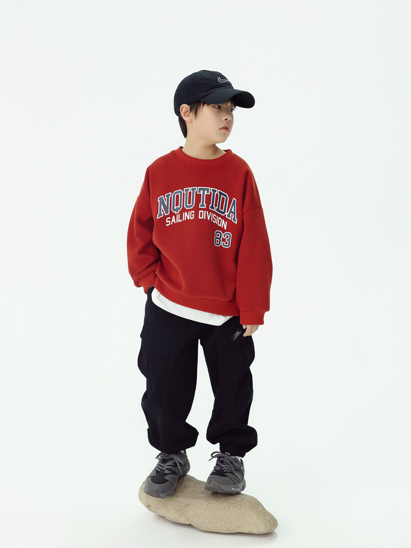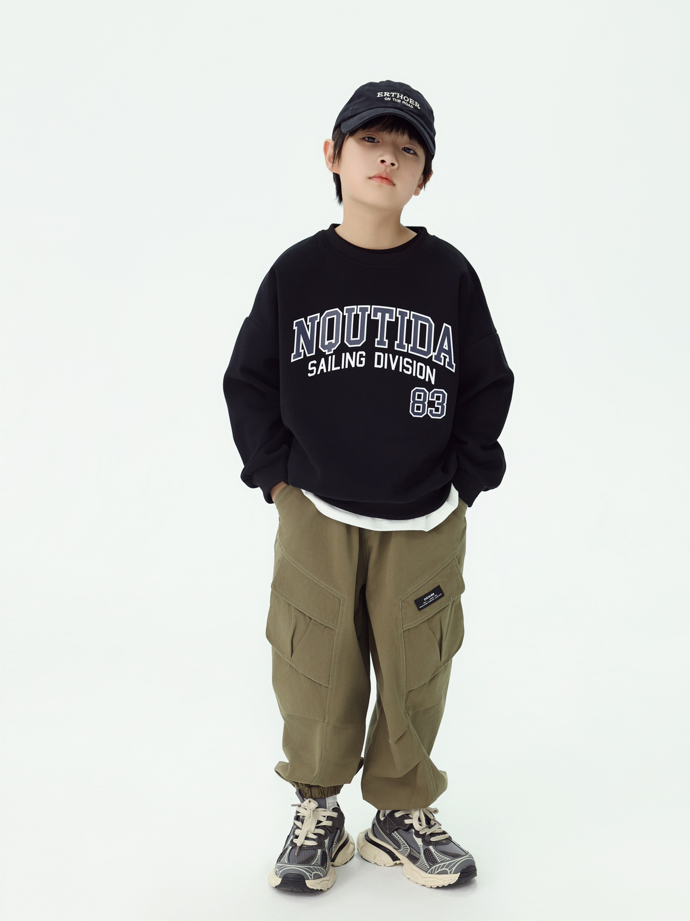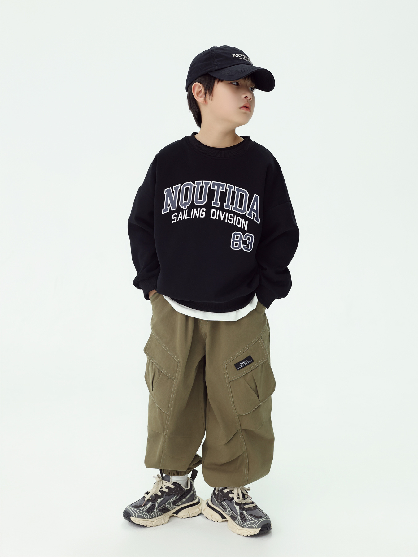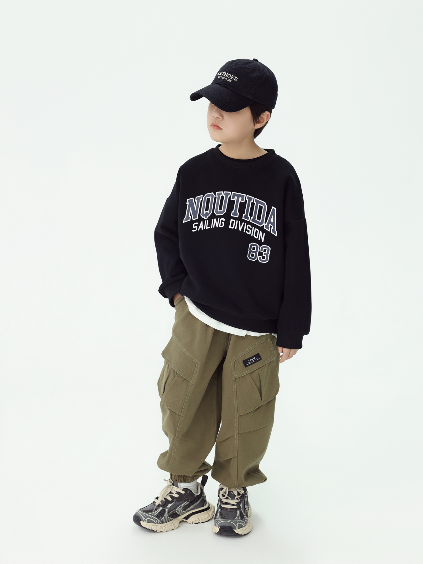 New children's clothing for the autumn of 2024: Stylish letter-printed tops for kids, long-sleeved, loose and casual round-neck hoodies for boys