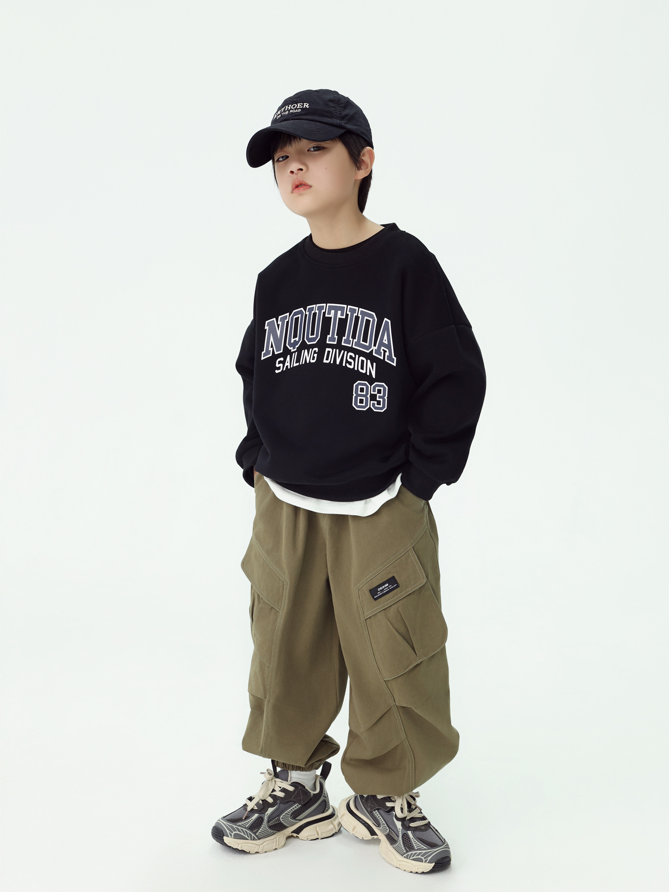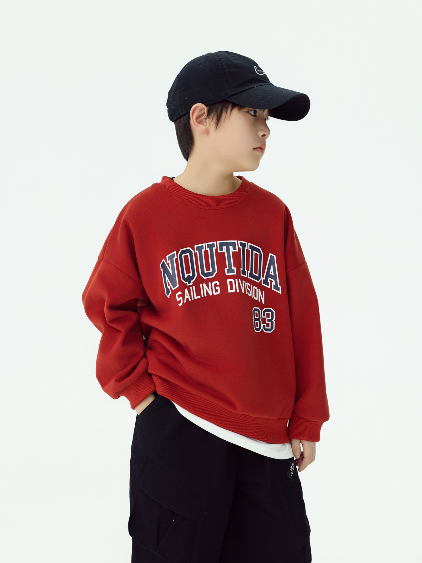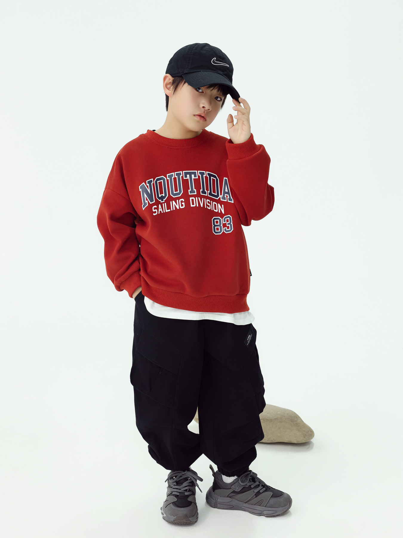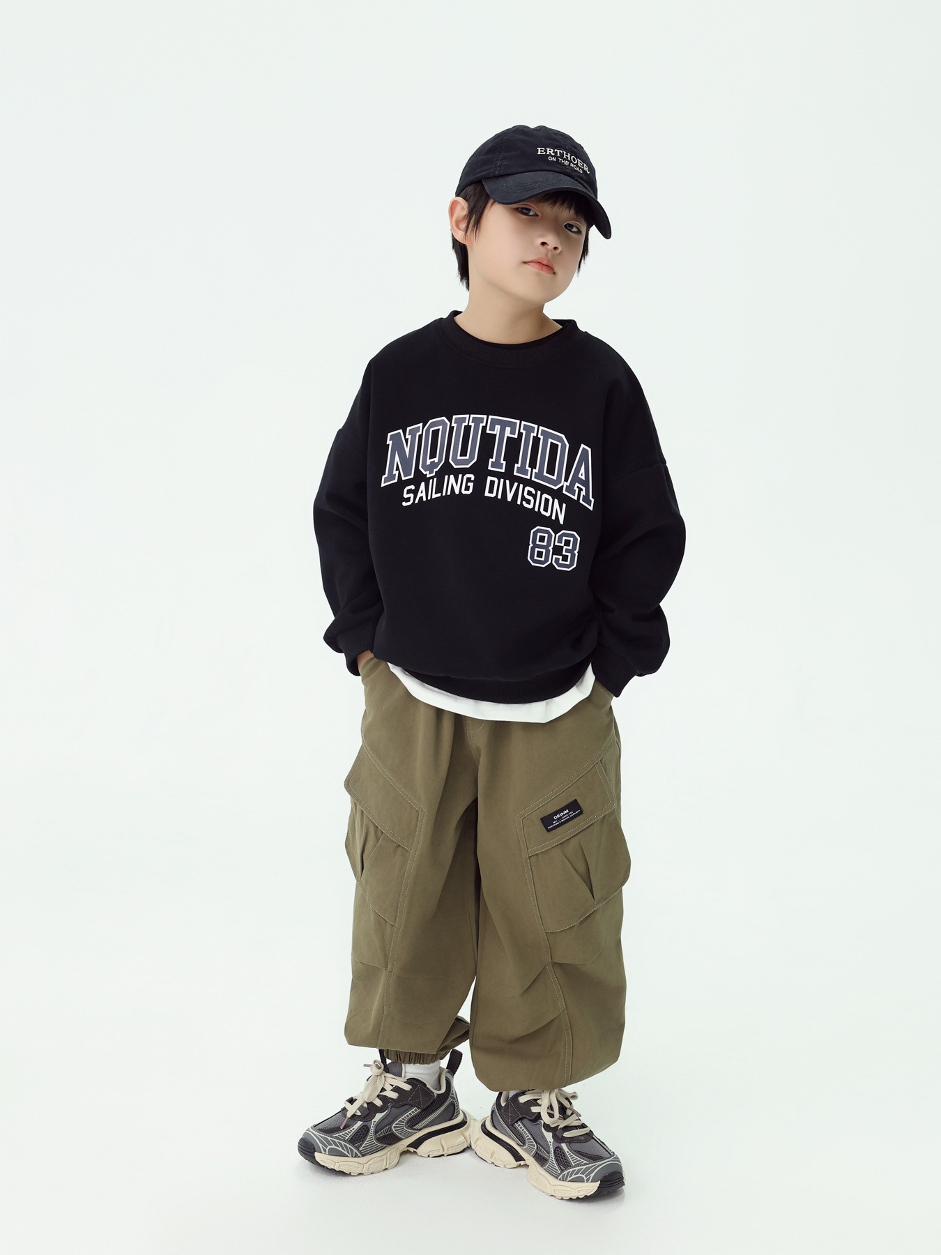 New children's clothing for the autumn of 2024: Stylish letter-printed tops for kids, long-sleeved, loose and casual round-neck hoodies for boys