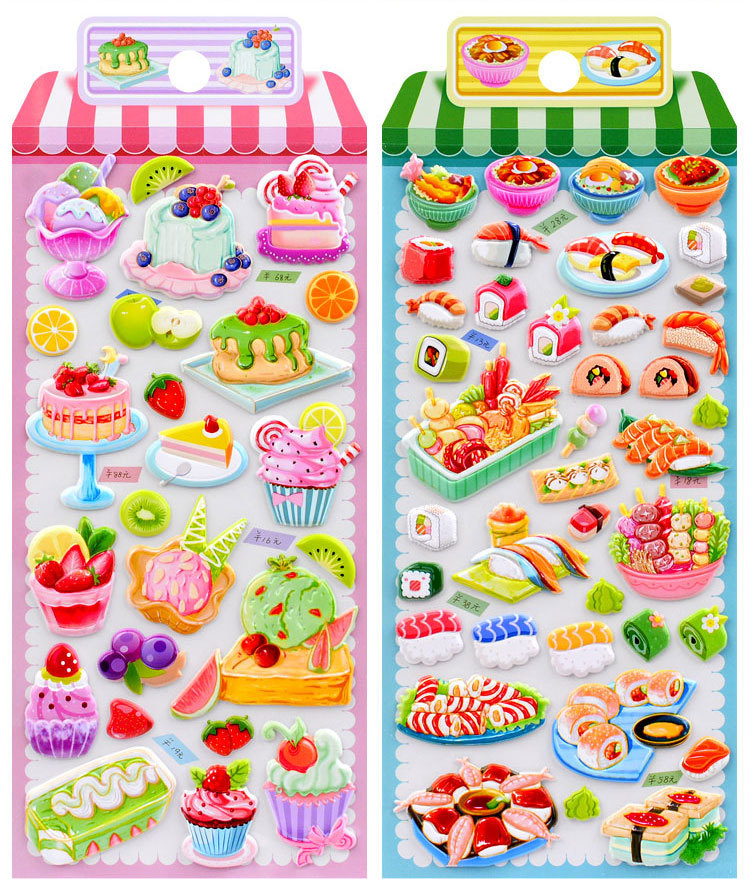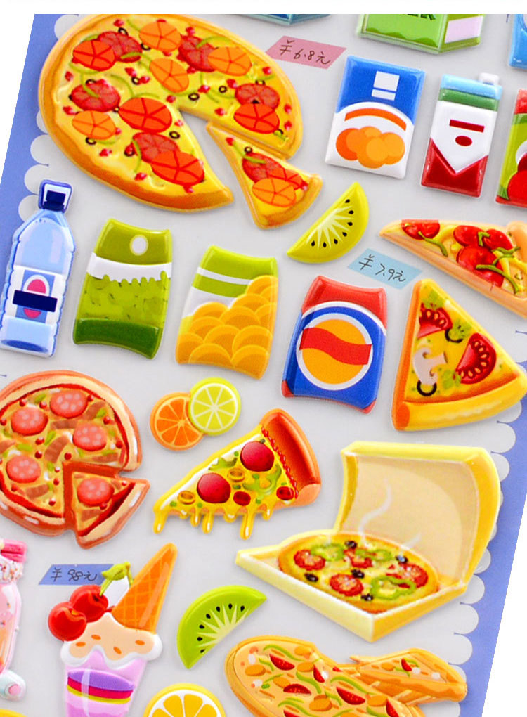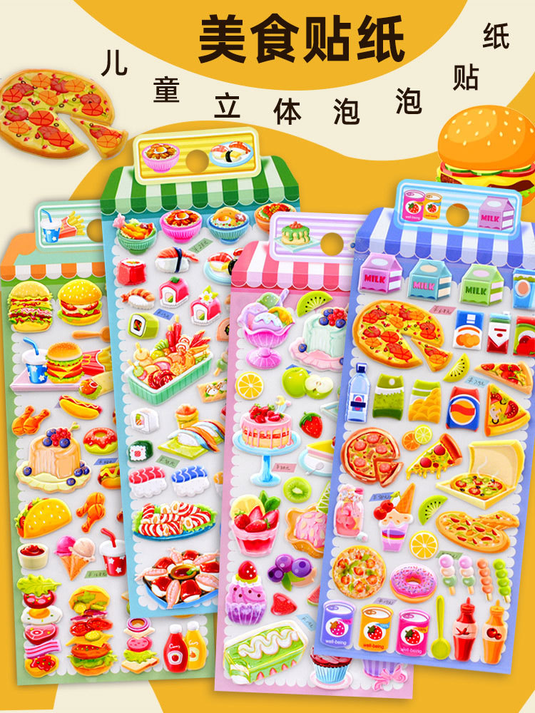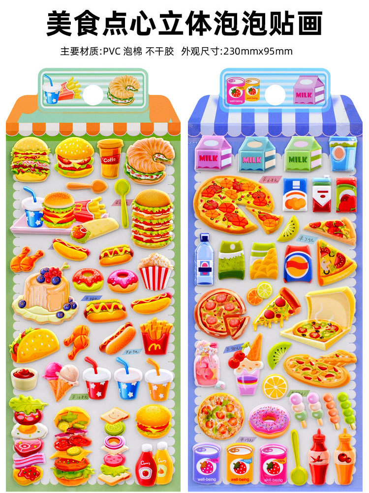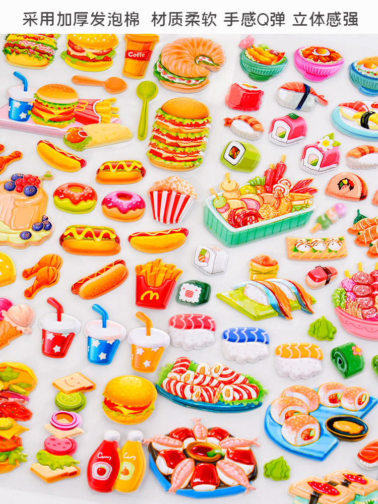 New children's food, hamburger, pizza, foam stickers, children's fun and cute expressions, cake, dessert, educational stickers