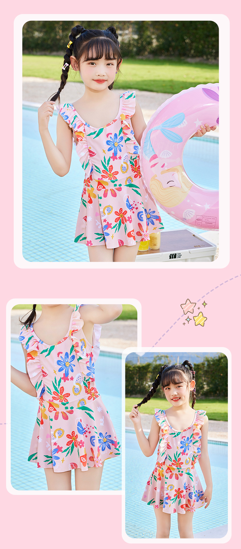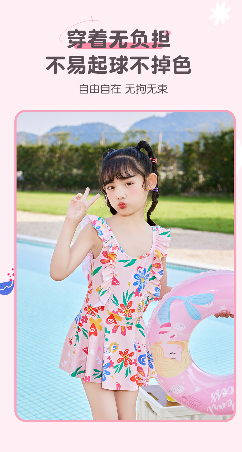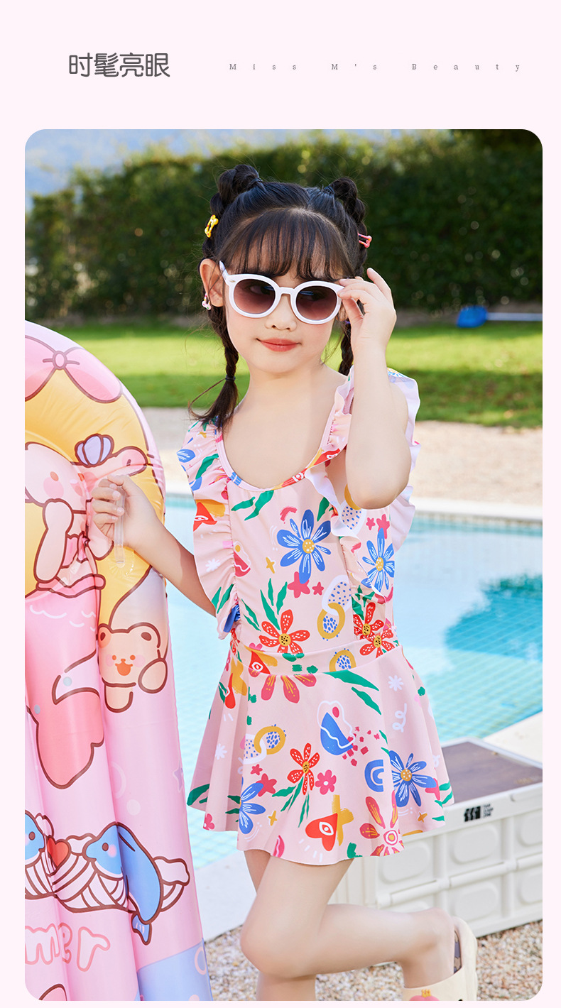 New children's swimsuits, training swimsuits, summer one-piece princess dresses for small, medium and large children, sunflower print, sweet
