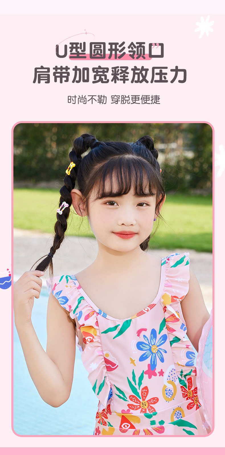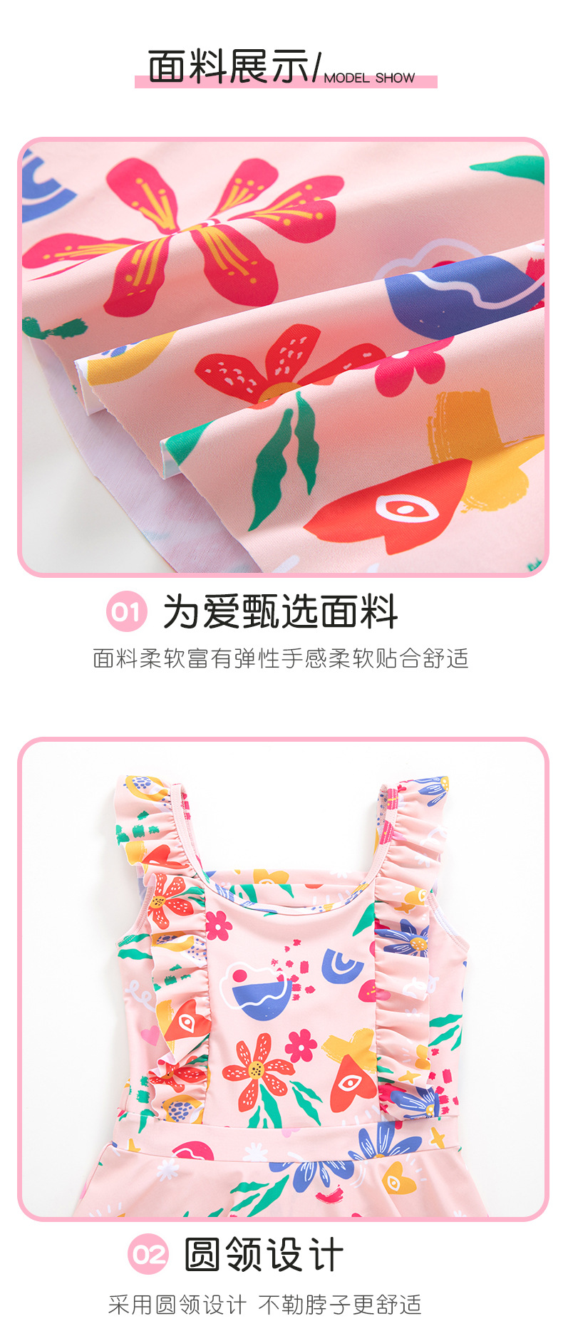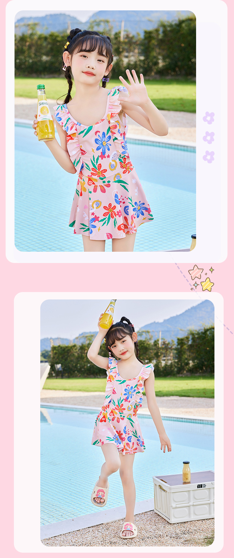 New children's swimsuits, training swimsuits, summer one-piece princess dresses for small, medium and large children, sunflower print, sweet