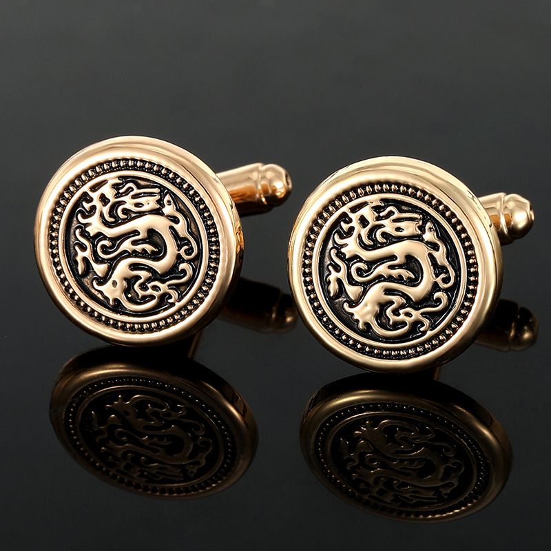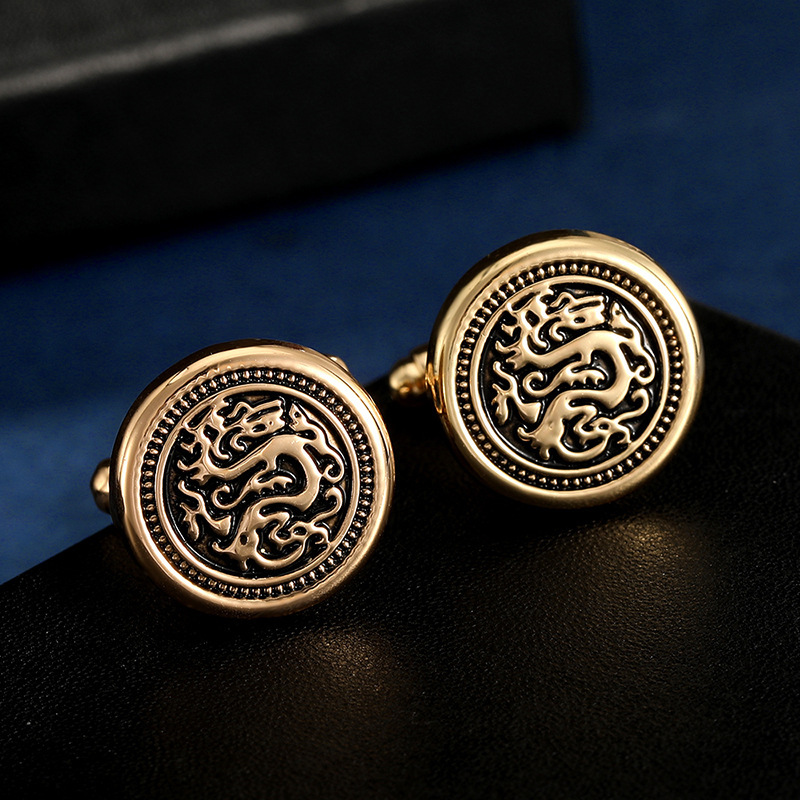 New Chinese dragon round golden cufflinks with lacquered hollowed-out patterns for men's shirts and retro French cufflinks