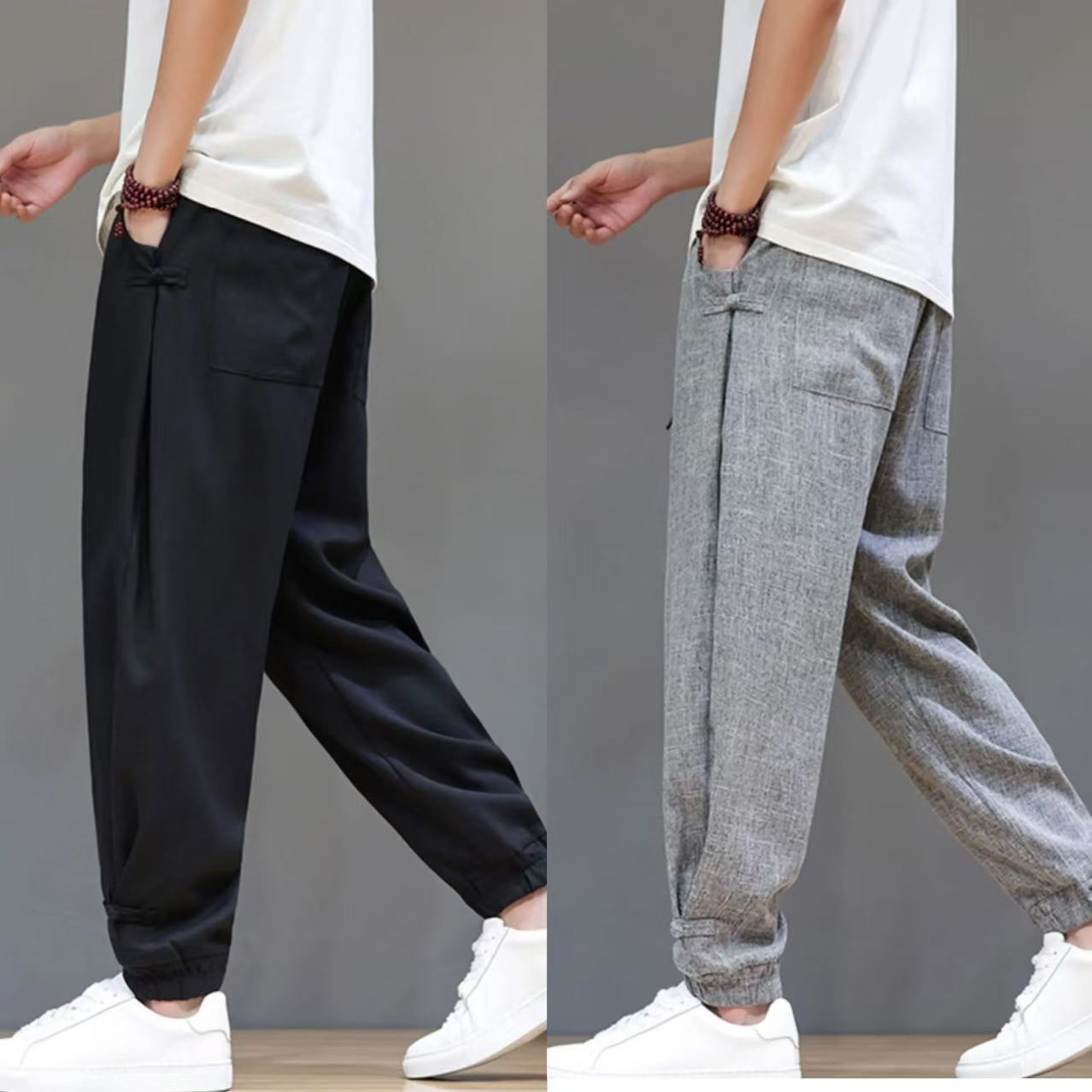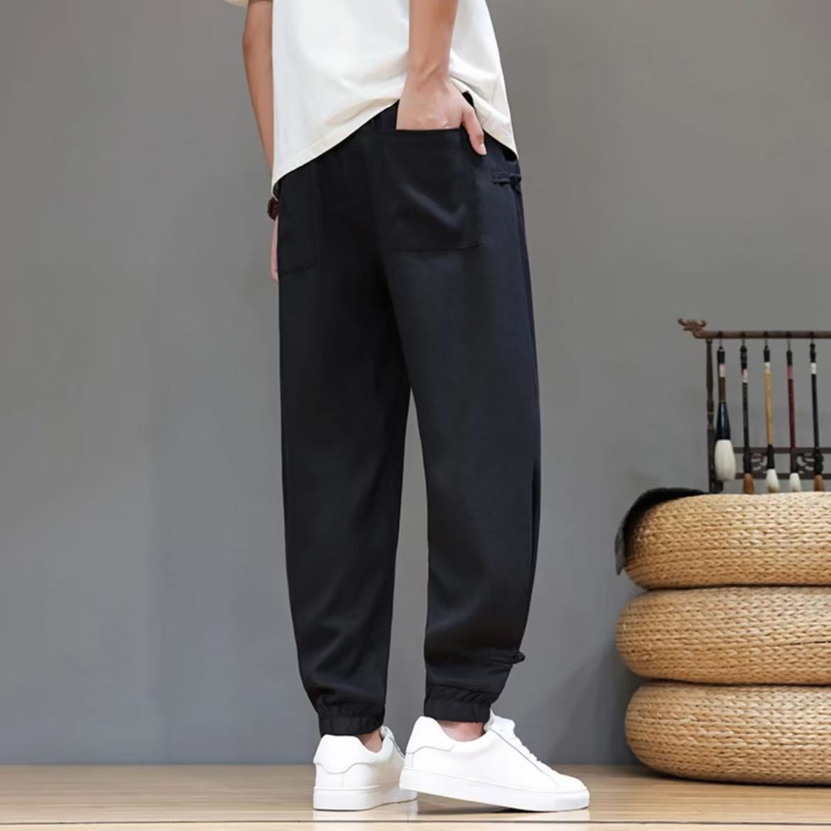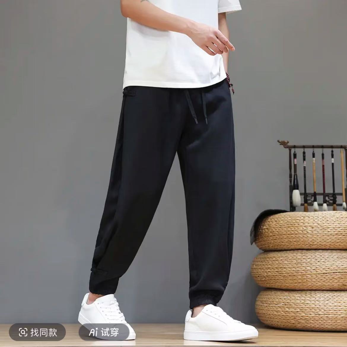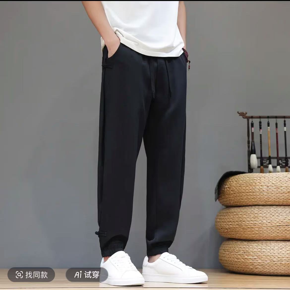 New Chinese-style 9-inch pants, men's summer thin button-up tight-fitting pants, student Harun pants, Chinese-style large-sized casual long pants