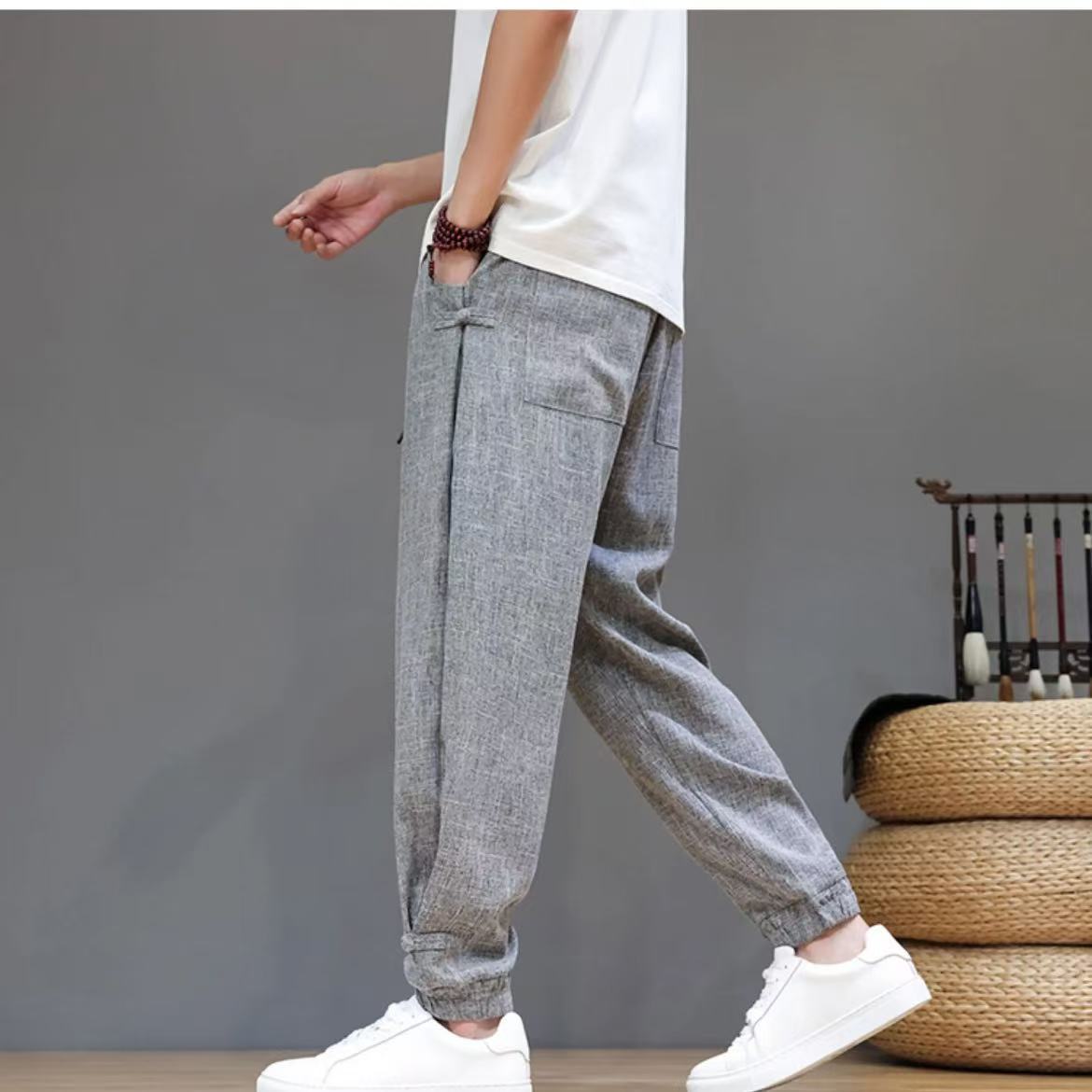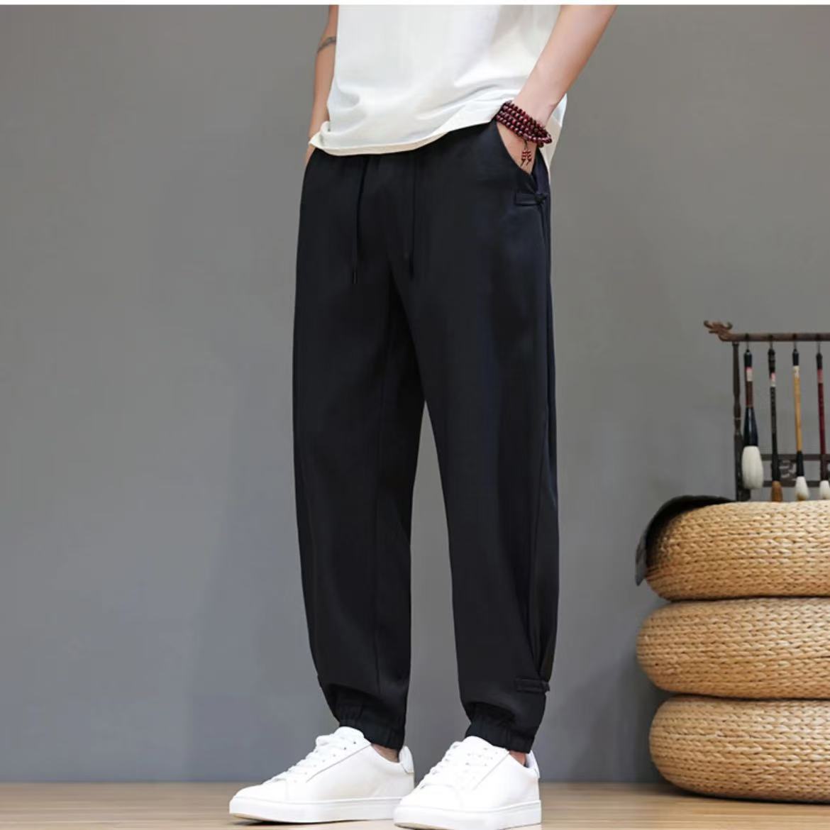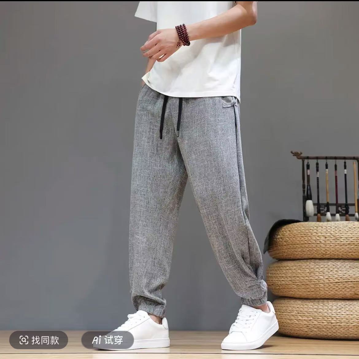 New Chinese-style 9-inch pants, men's summer thin button-up tight-fitting pants, student Harun pants, Chinese-style large-sized casual long pants