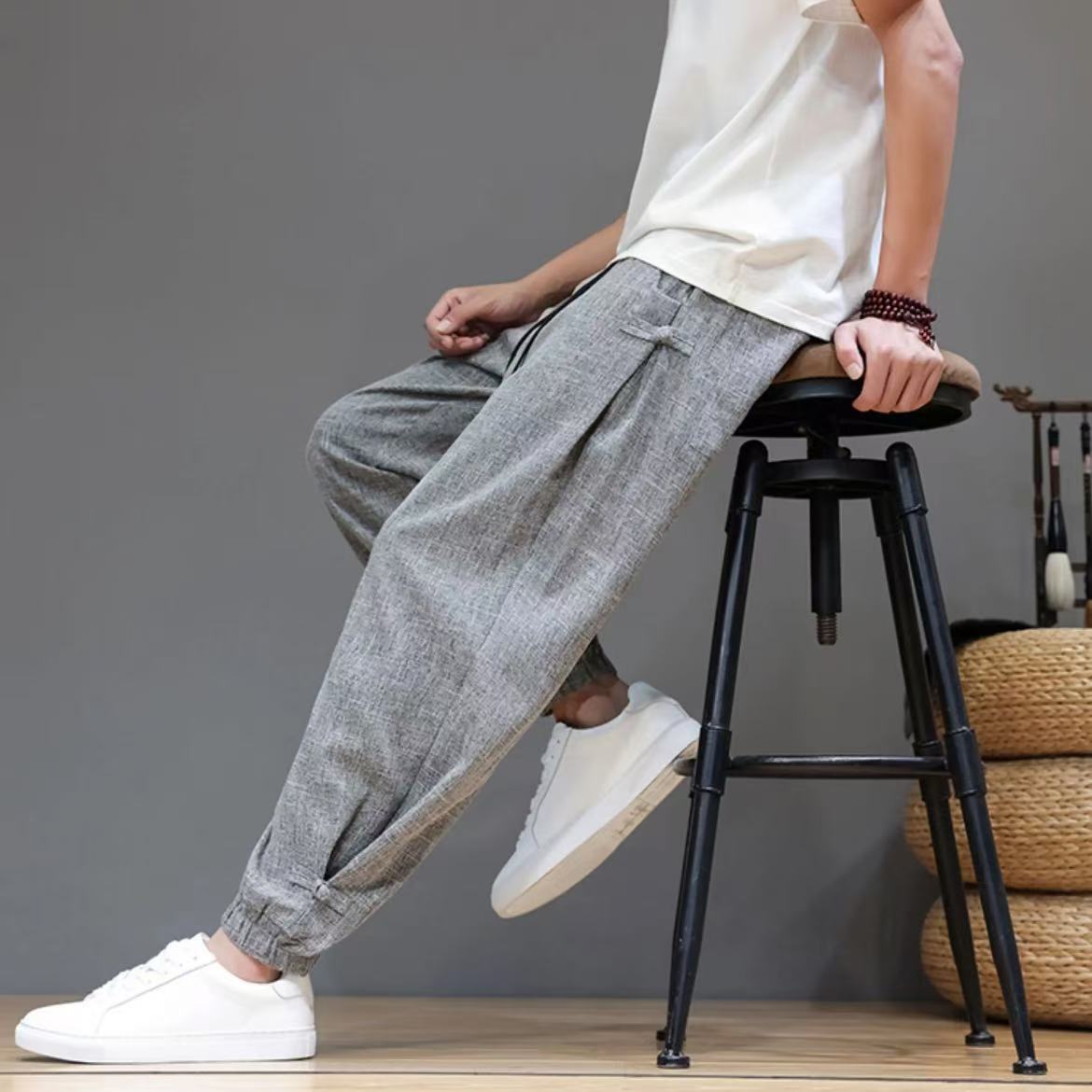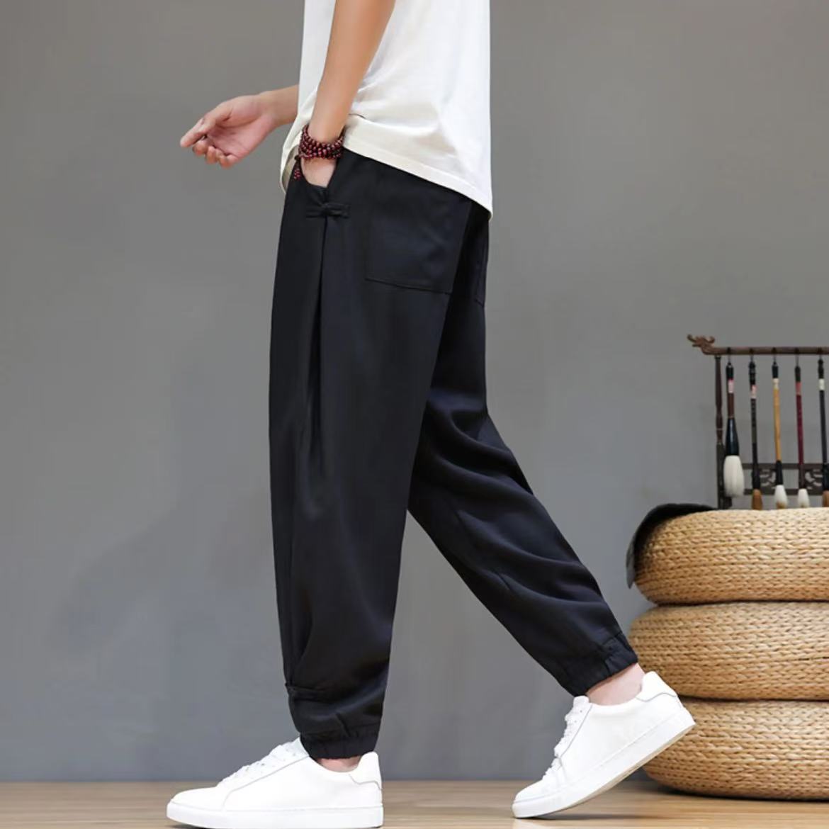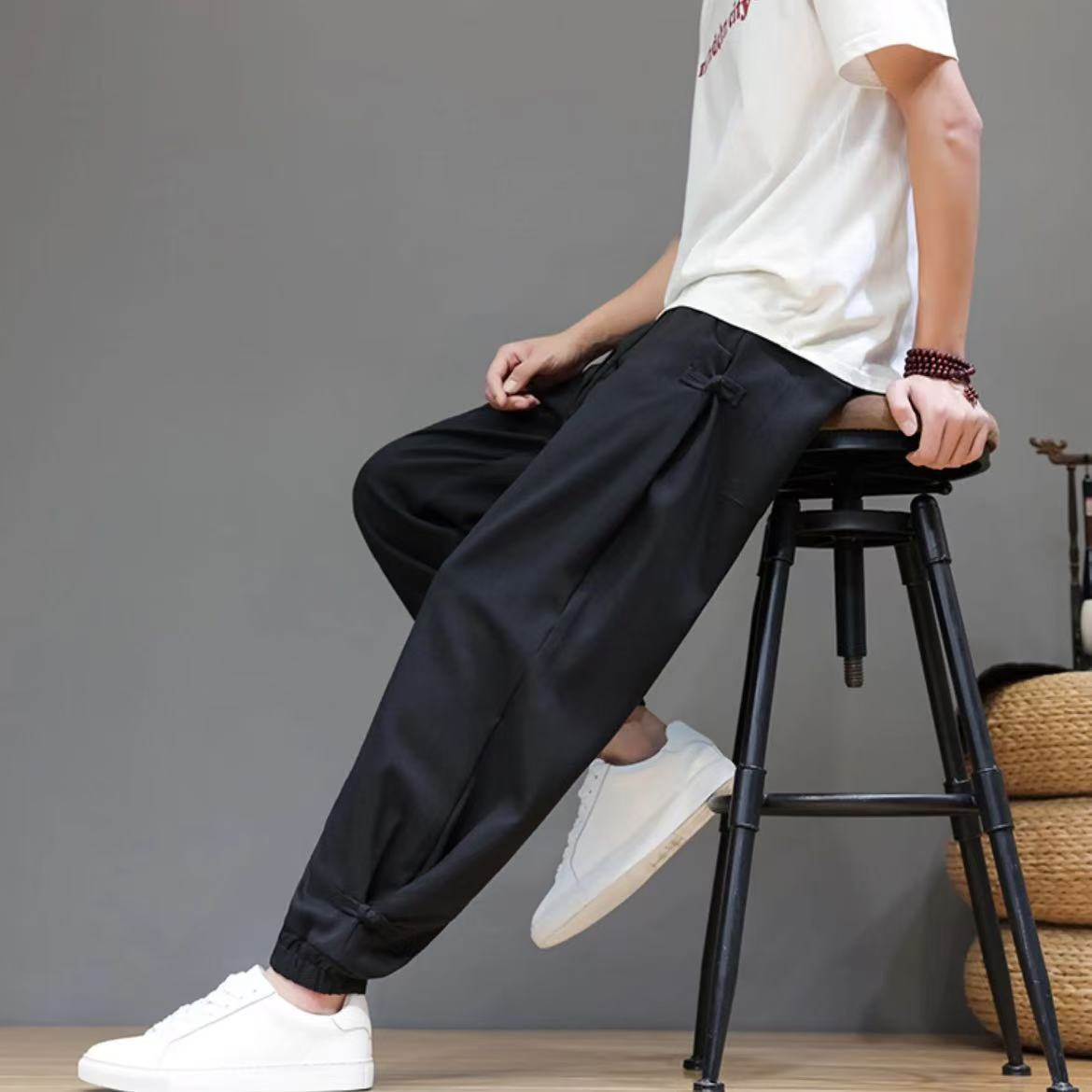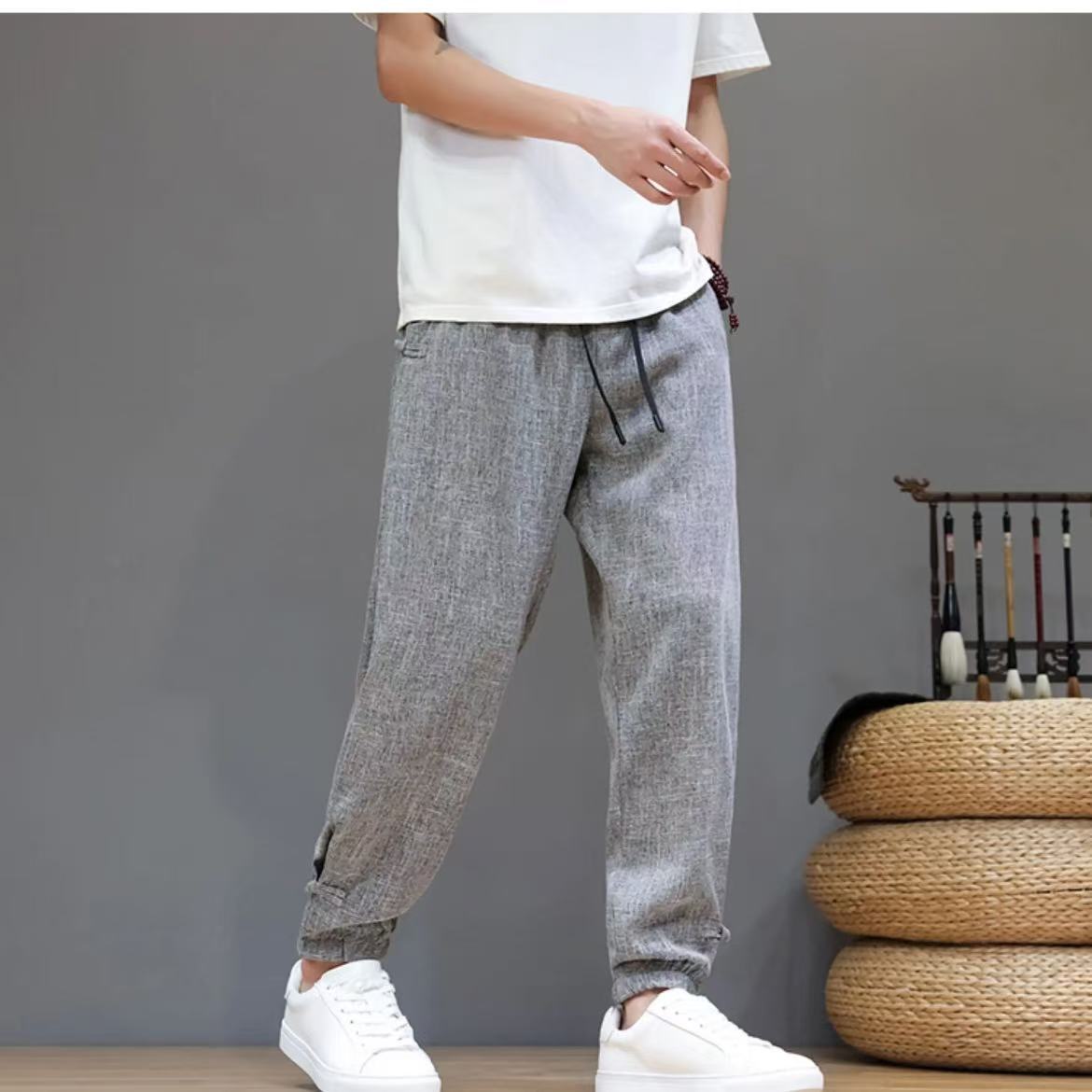 New Chinese-style 9-inch pants, men's summer thin button-up tight-fitting pants, student Harun pants, Chinese-style large-sized casual long pants
