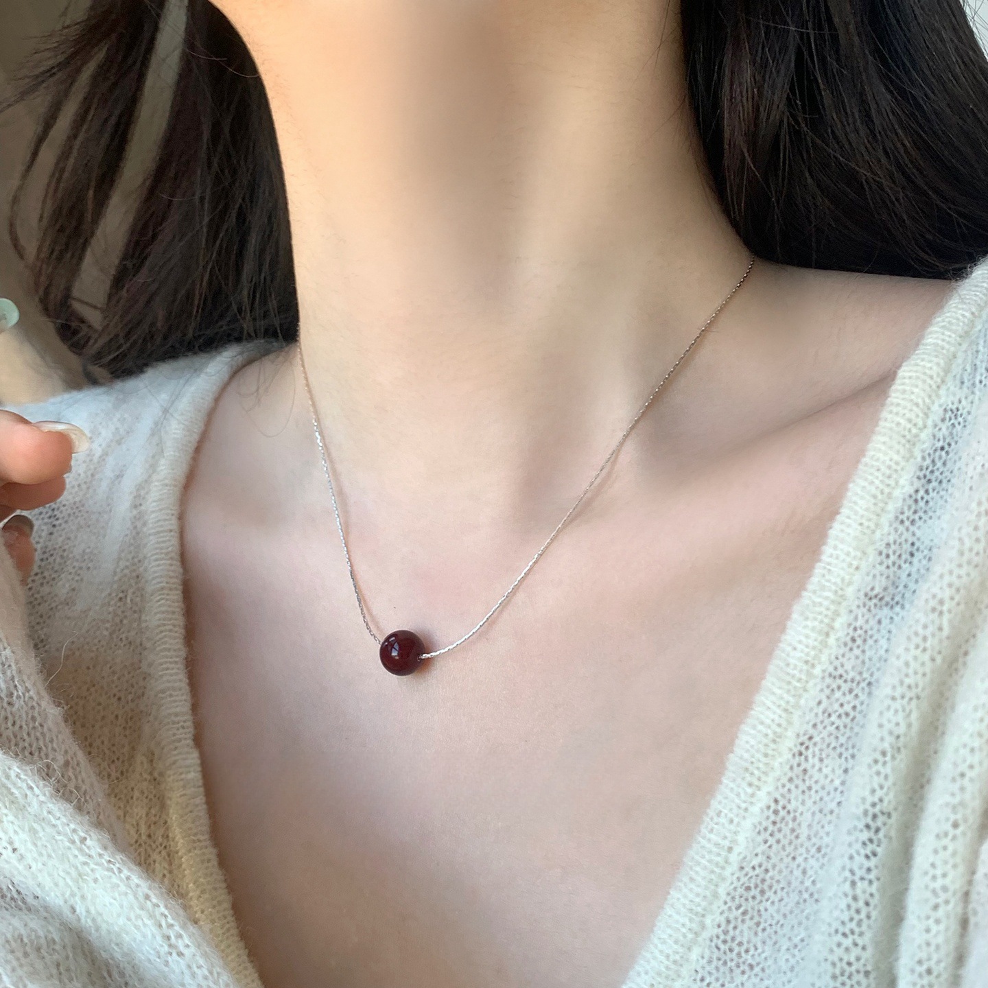 New Chinese-style Ankela red beaded necklace, natural agate beaded light luxury high-end autumn and winter versatile earrings and earrings