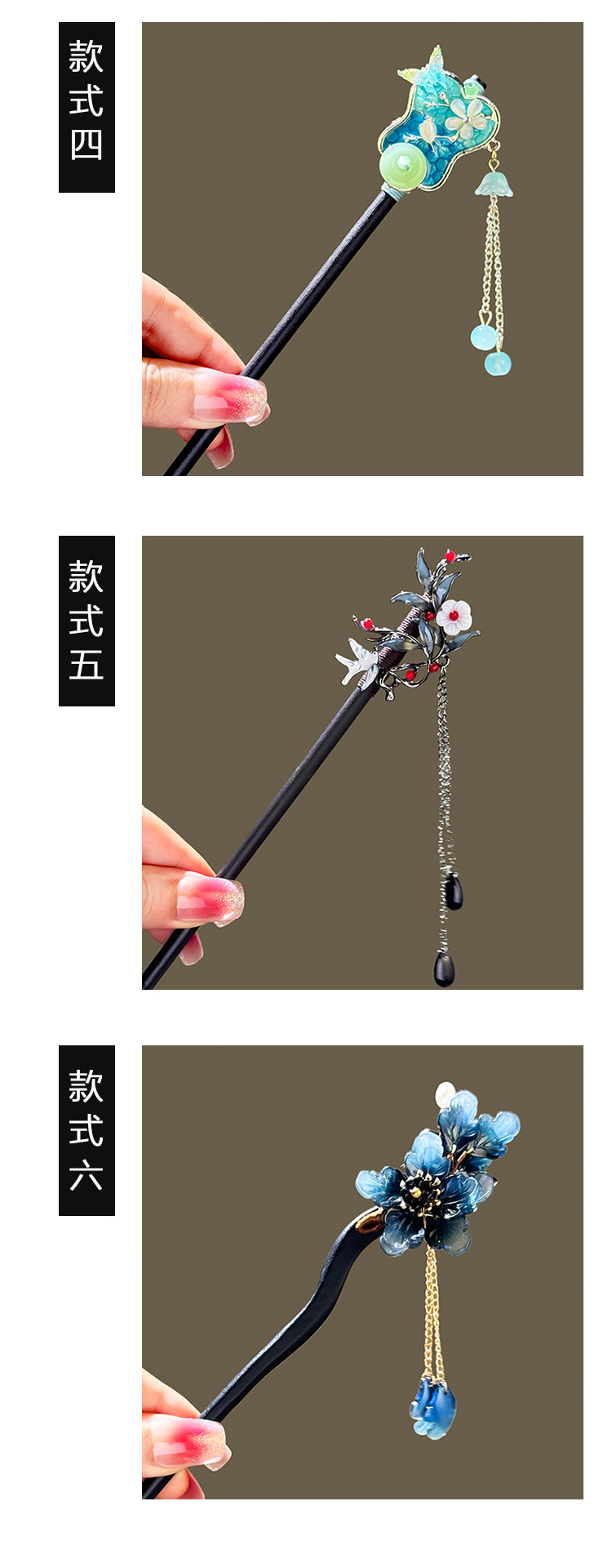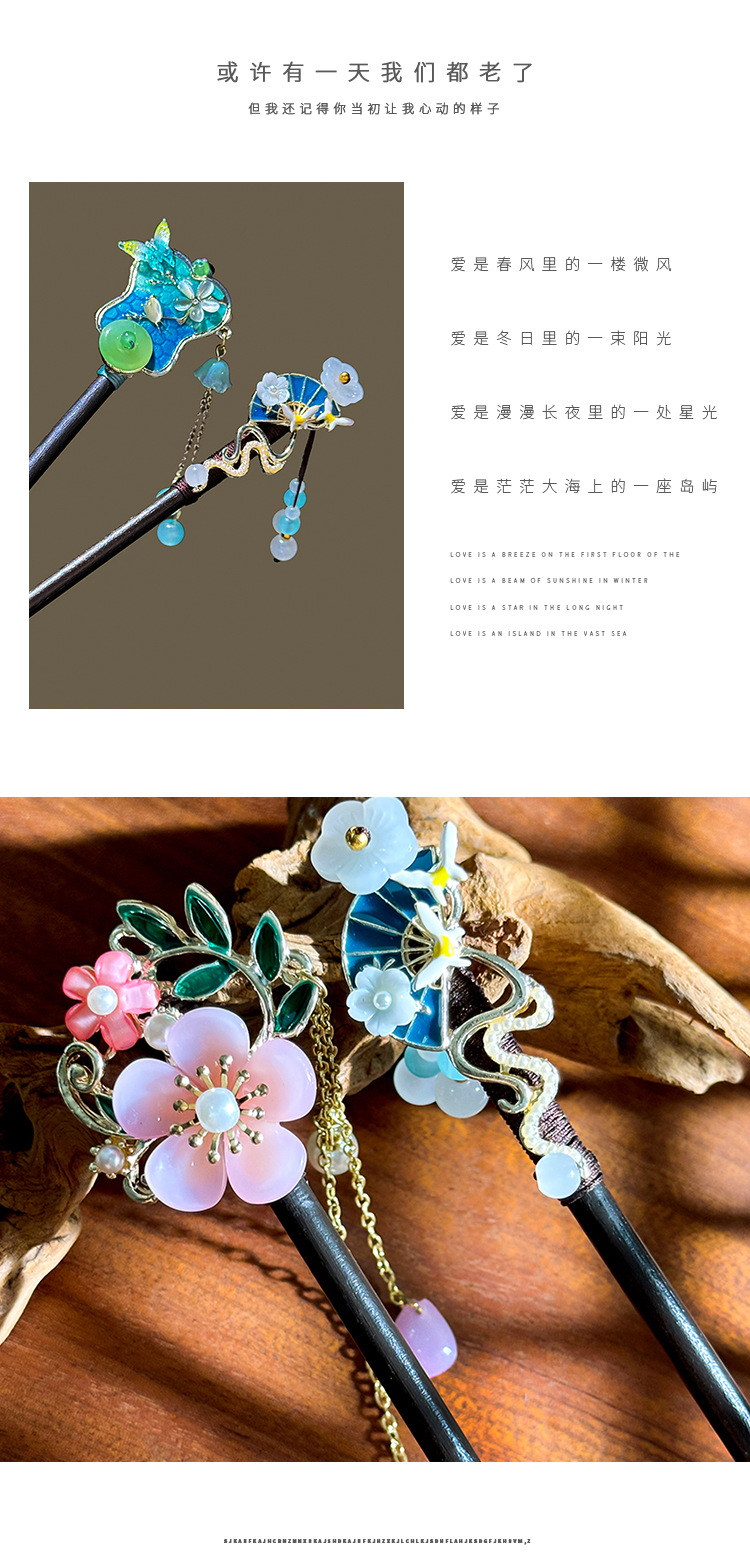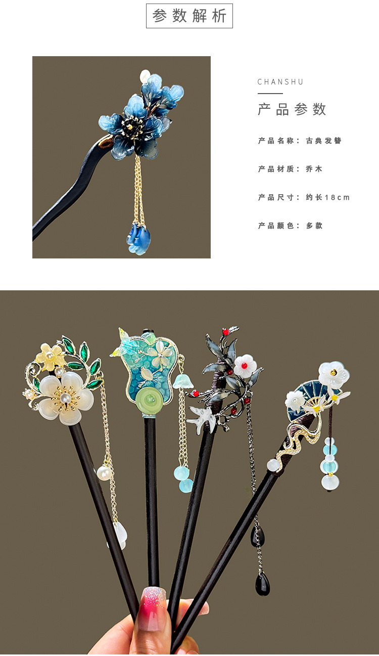 New Chinese-style ebony hairpins, ancient-style headwear, banana leaf fans, tassels, hairpins, ancient Hanfu, updo accessories, women's national trend series