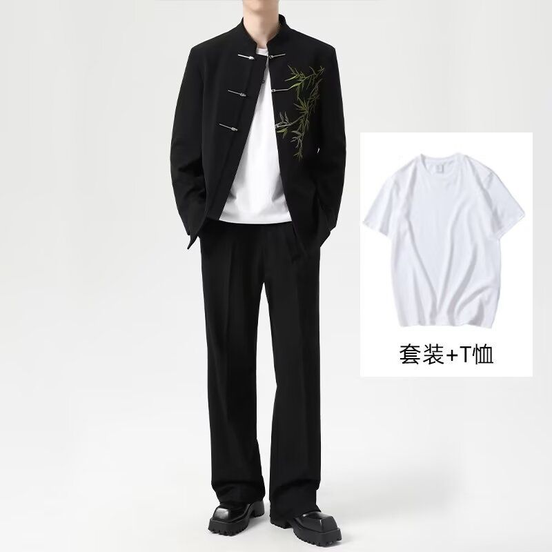 New Chinese-style men's airplane buckle Chinese-style bamboo embroidery coat with shoulder pads, graduation ceremony dress, men's Zhongshan Tang suit