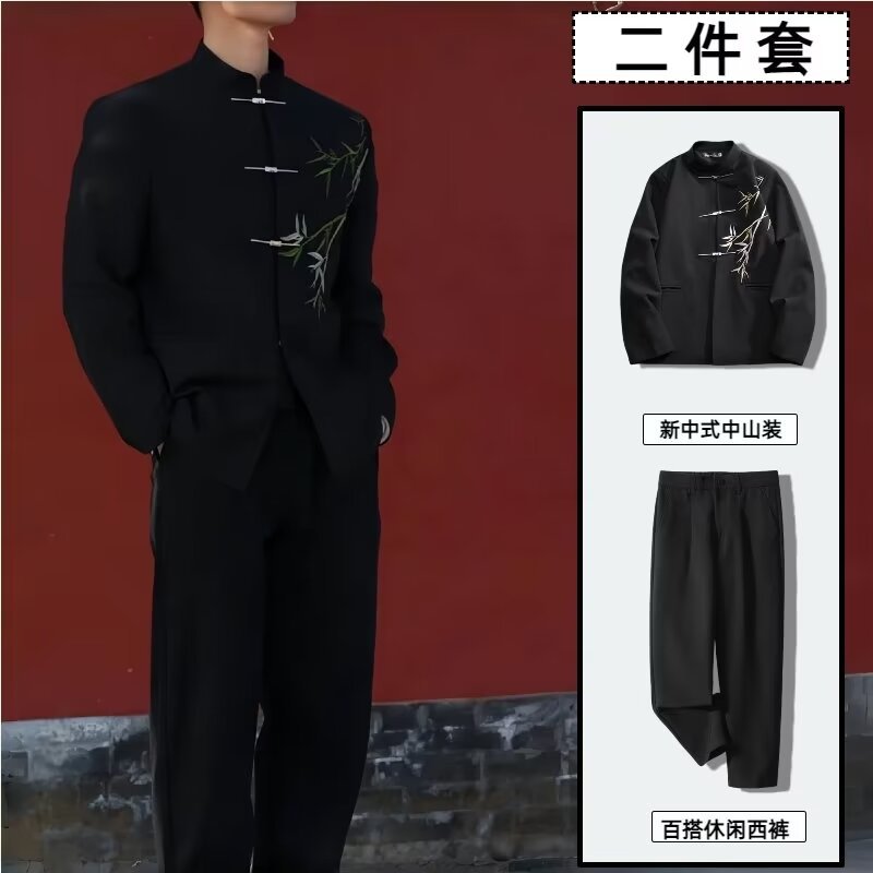 ZS05 Two-piece Set - [Zhongshan Suit + Long Trousers] Black