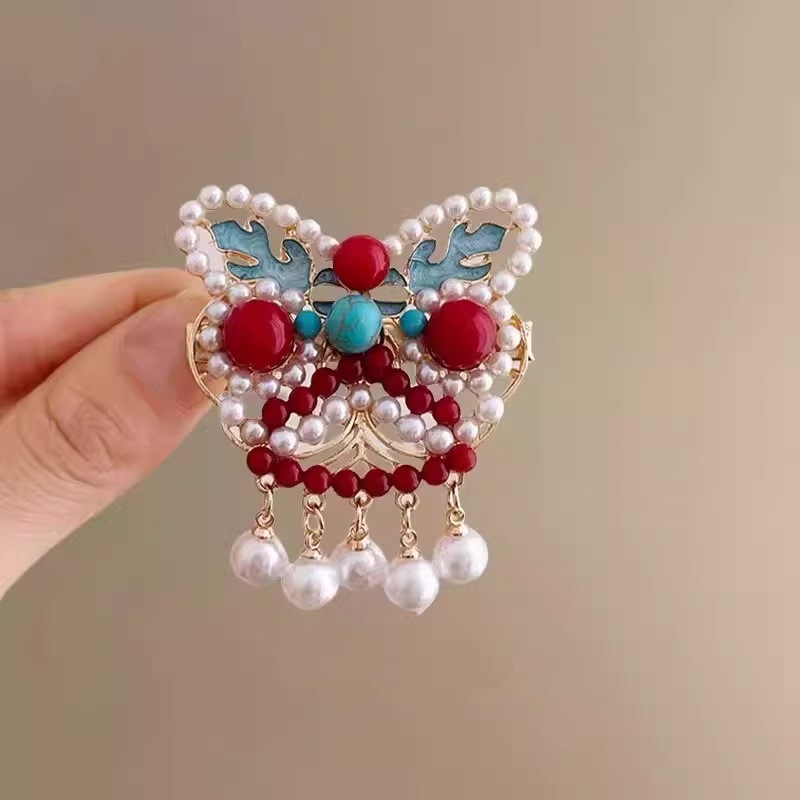 New Chinese-style New Year lion dance tassel hair clip for girls, festive and cute side bangs clip for babies, Hanfu headwear
