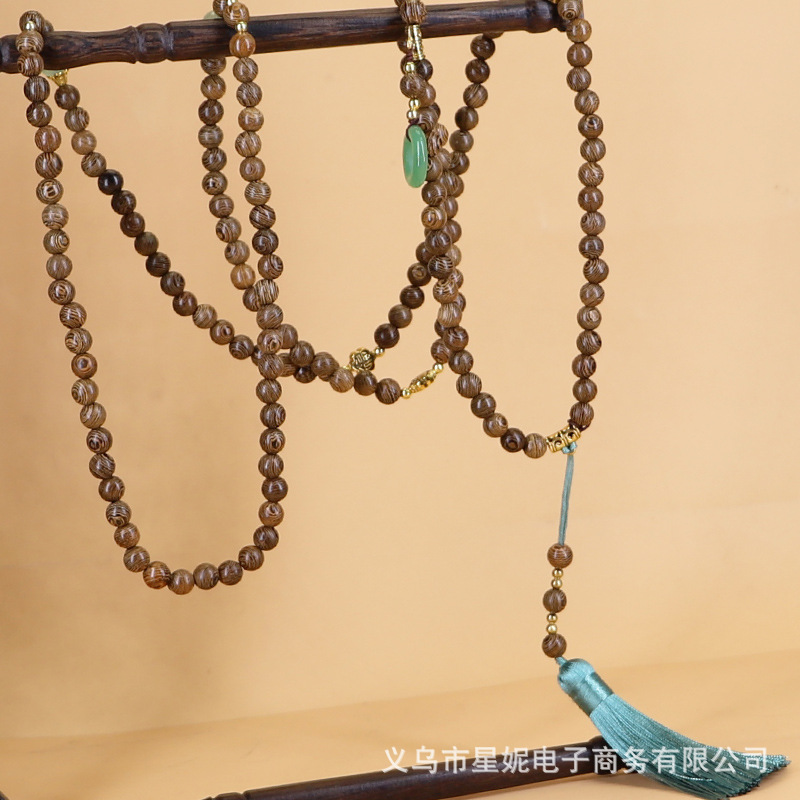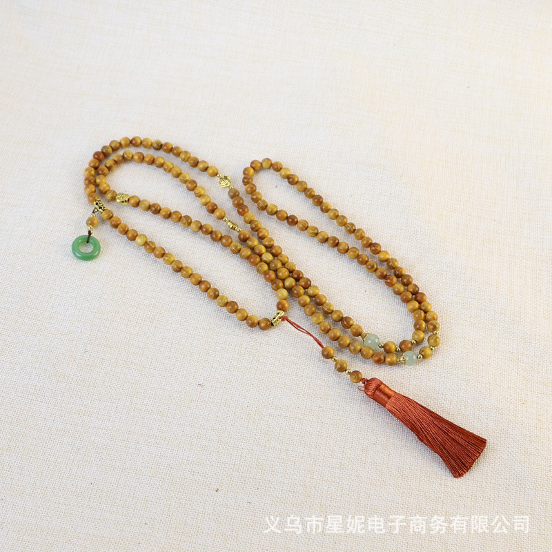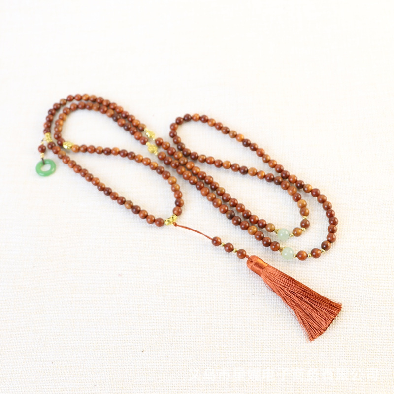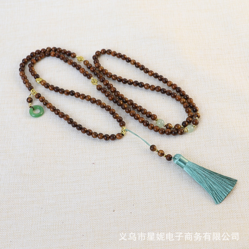 New Chinese-style retro beaded crossbody chain, high-end Chinese style, niche Buddhist bead necklace, long tassel cheongsam accessory