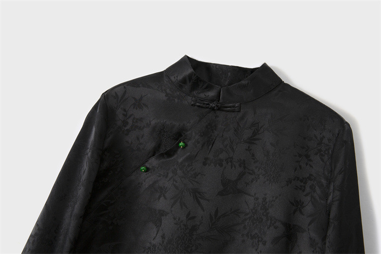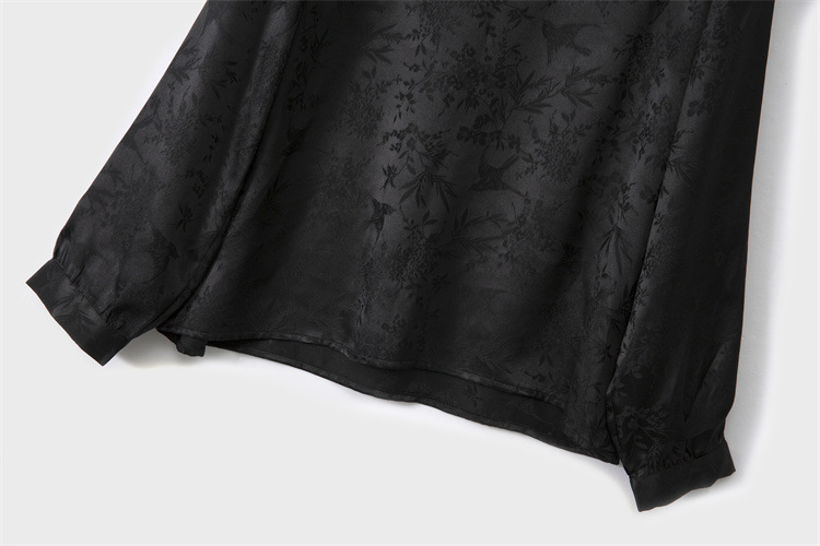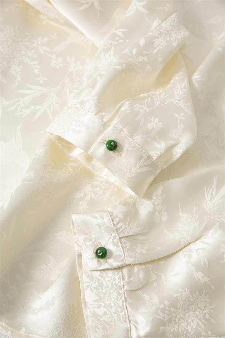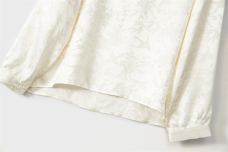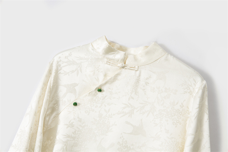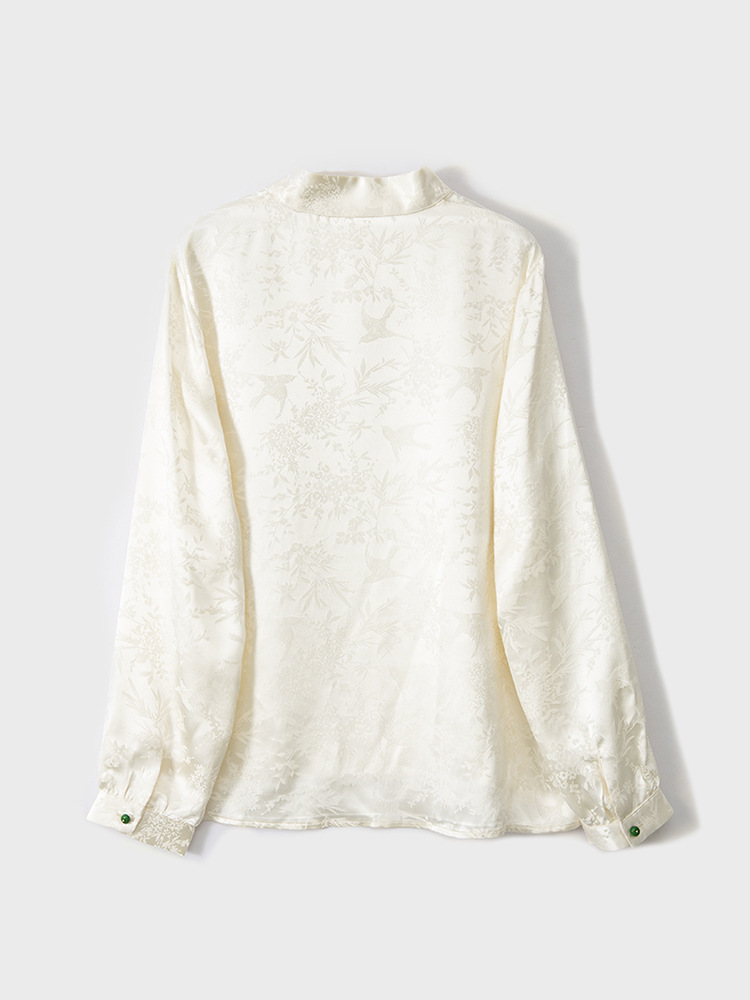New Chinese-style top, women's base layer, mulberry silk, retro stand-up collar, slanted front, silk shirt, jacquard long-sleeved new style