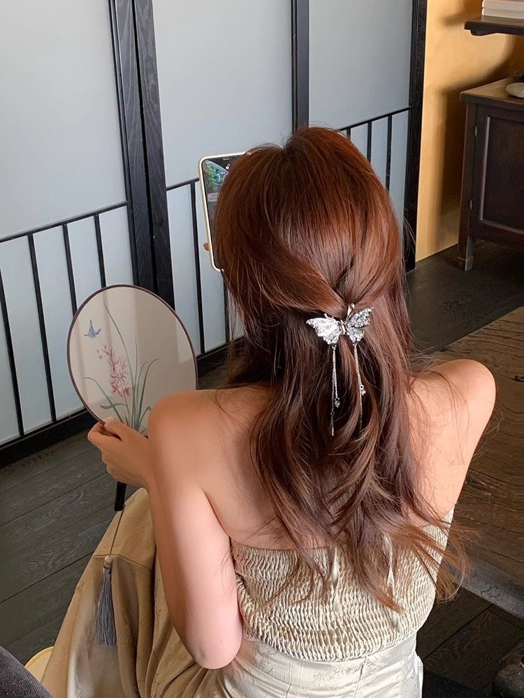 New Chinese-style traditional Chinese style, cold and elegant butterfly tassel grab clip, women's hair clip, shark clip, high-end hair accessory, head accessory, hair grab