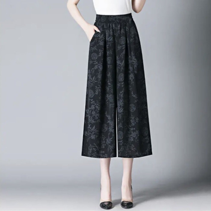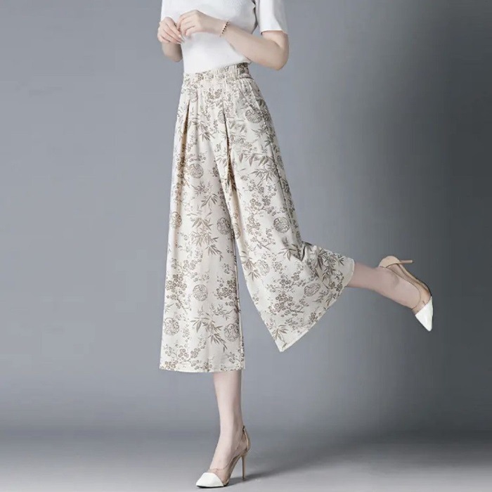 New Chinese-style traditional Chinese style dress pants, thin floral print mom summer new wide-leg casual loose pants, 80% slimming pants for women